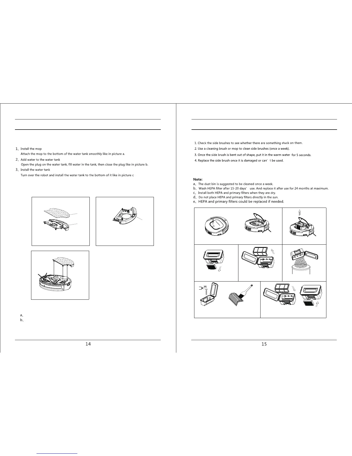 Warning: The external and internal of the robot must be kept free from water.