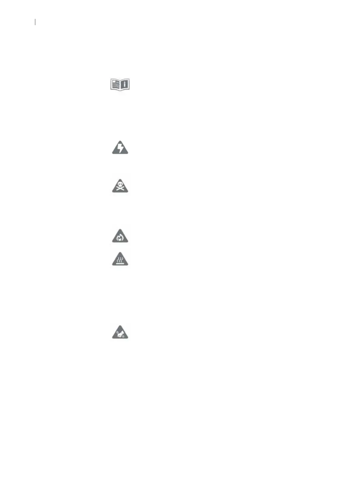 These instructions indicate on dangers for heat and hot surfaces, which can