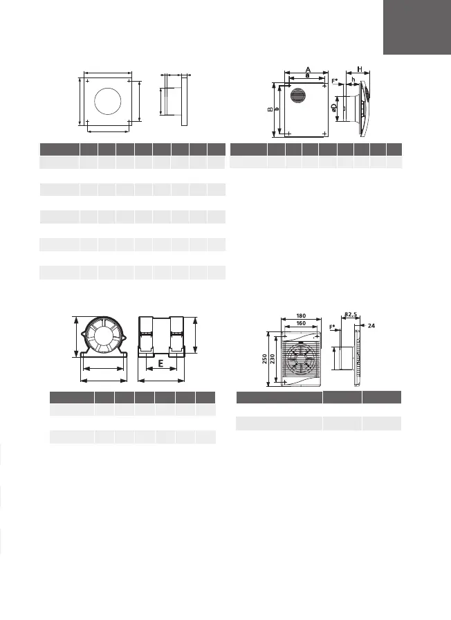 *- This size is present only in fans with “back flow valve”