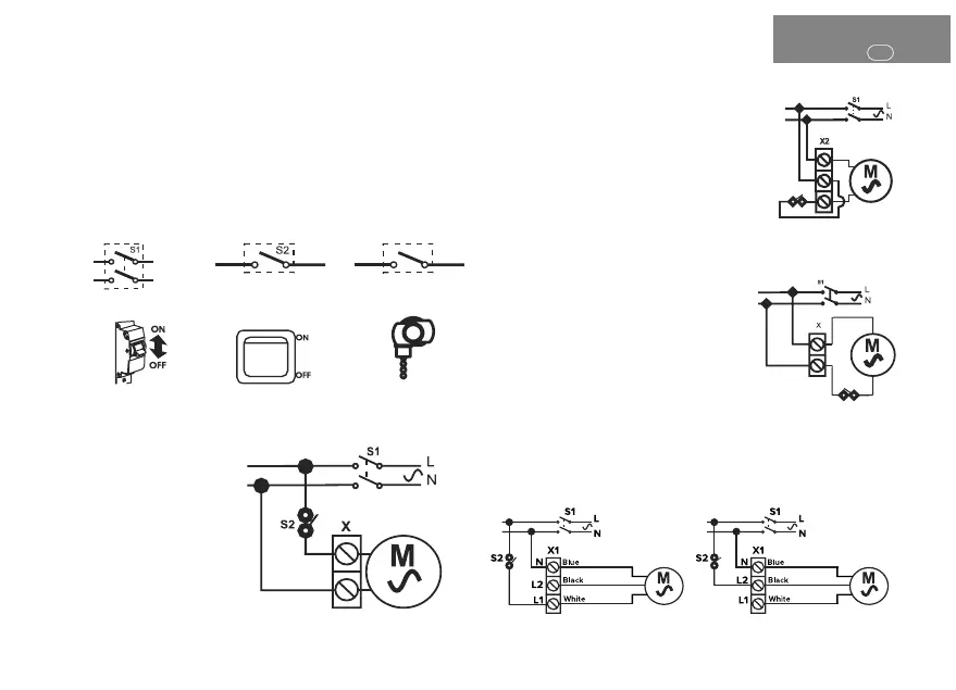 of fan connection, equipped with - 02 option (pull-chain switch).