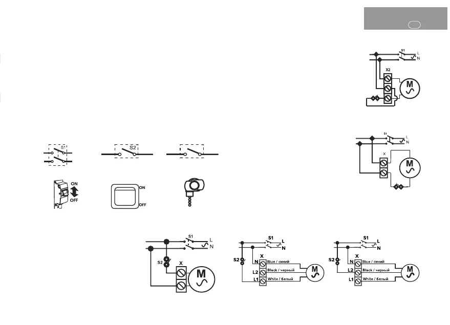 Подключения вентиляторов, оснащённых опцией - 02 (тяговый выключатель).