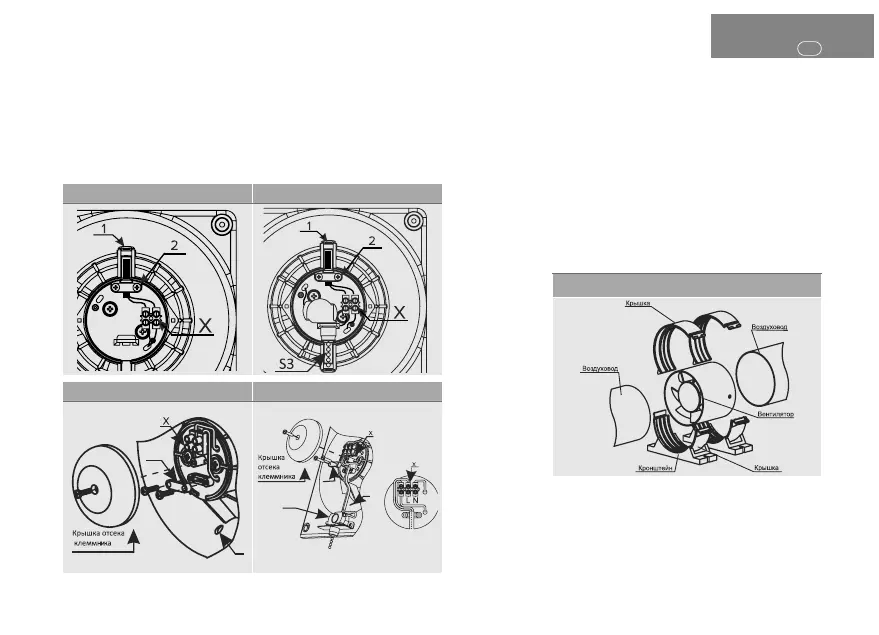 • снять крышку отсека клеммника вентилятора;