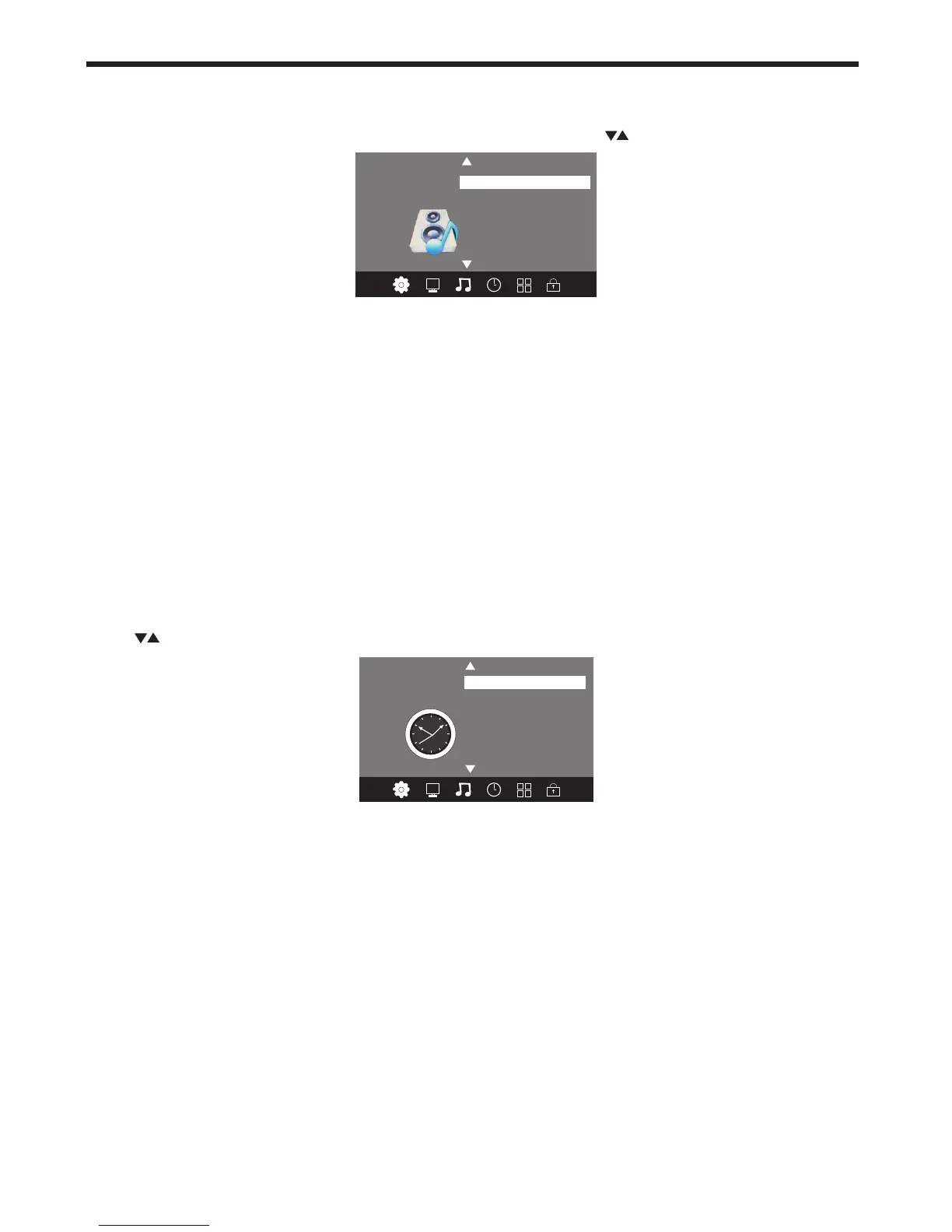 The fourth item of the menu is the TIME MENU. You can adjust the clock, power on/off times, sleep timer etc
