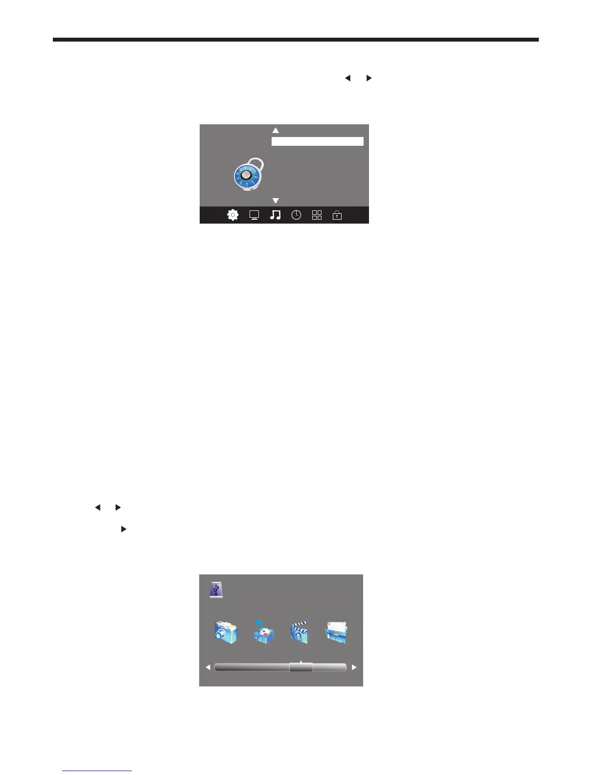 To enter the LOCK Menu, press the MENU button and then press or buttons to select the LOCK Menu.
