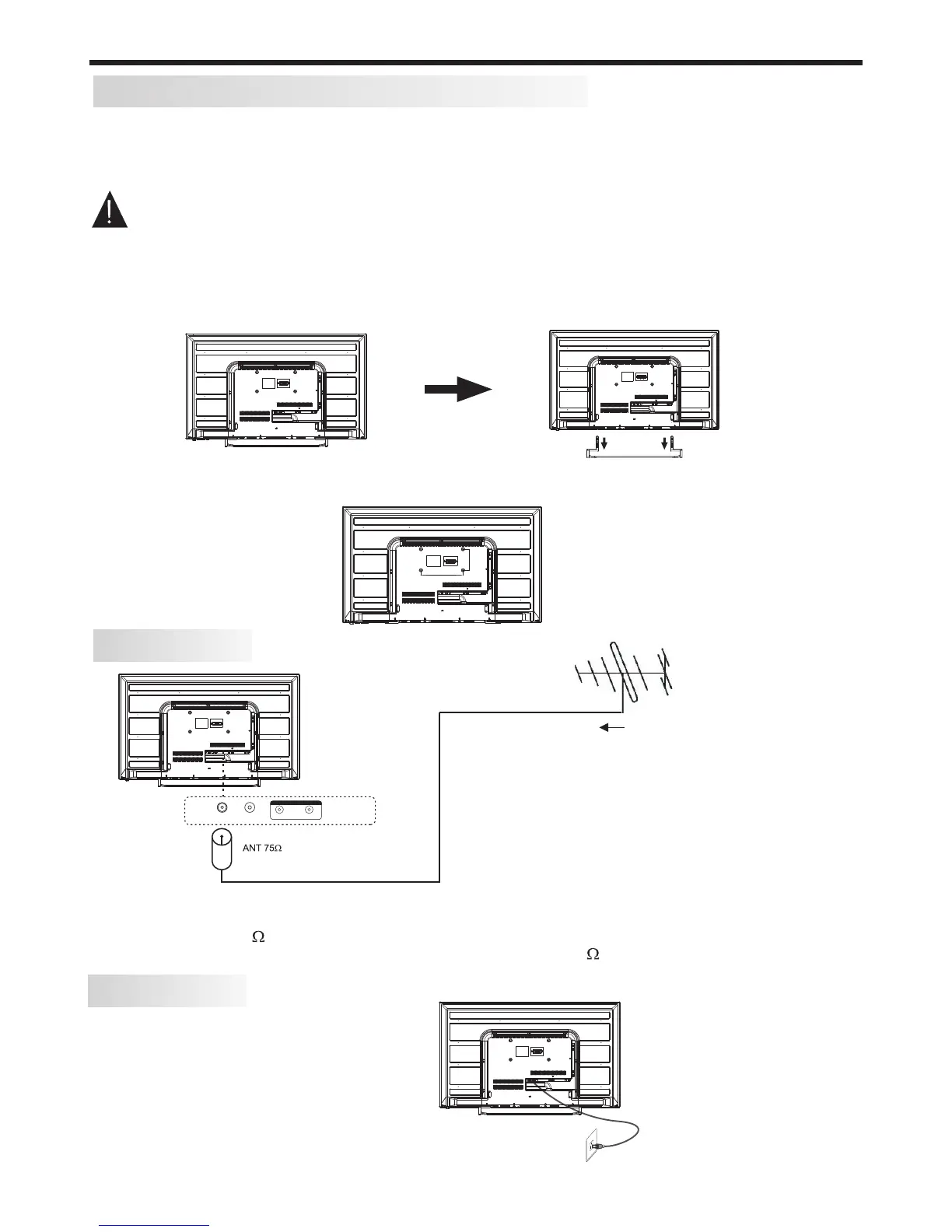 stand are attached to the TV’s body, and take away the stand (put the stand and screws somewhere