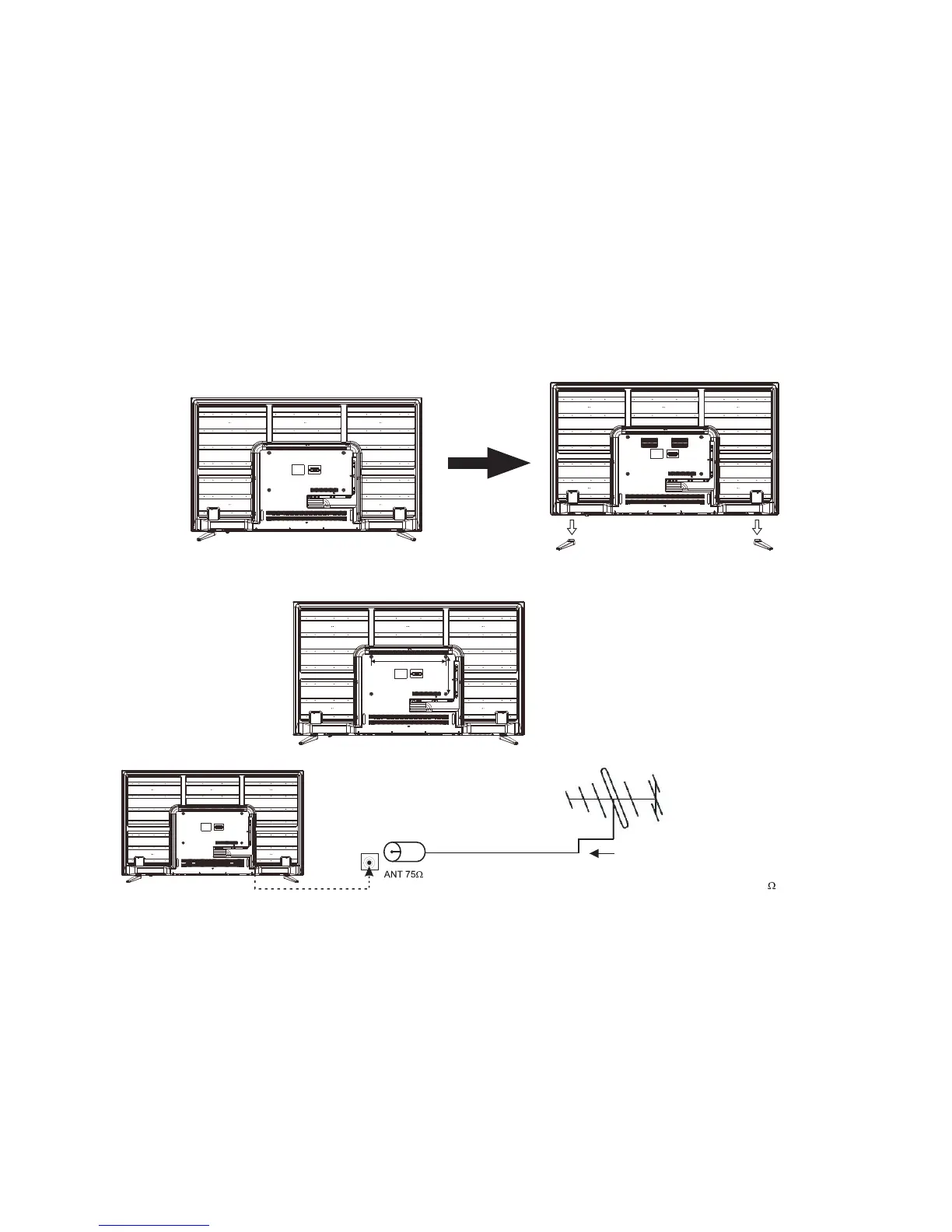 are attached to the TVs body and remove the stands (store the stands and screws in a