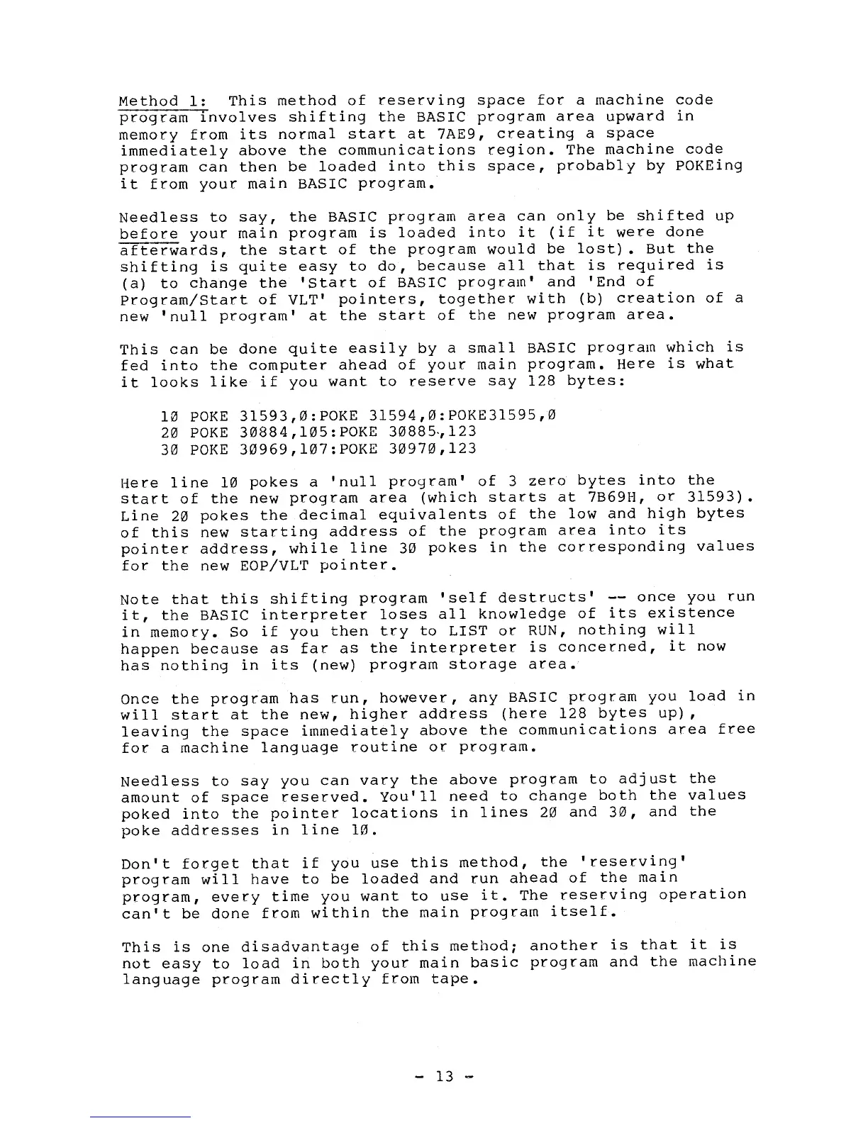 Here line 10 pokes a 'null program' of 3 zero bytes into the
