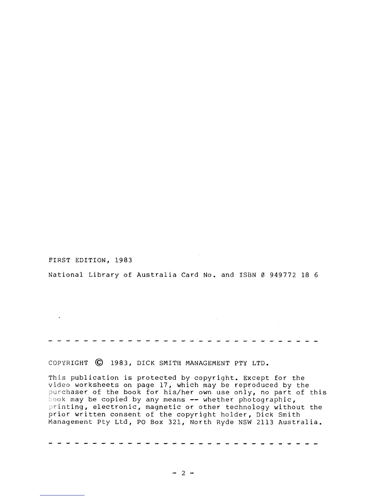 1983, DICK SMITH MANAGEMENT PTY LTD.