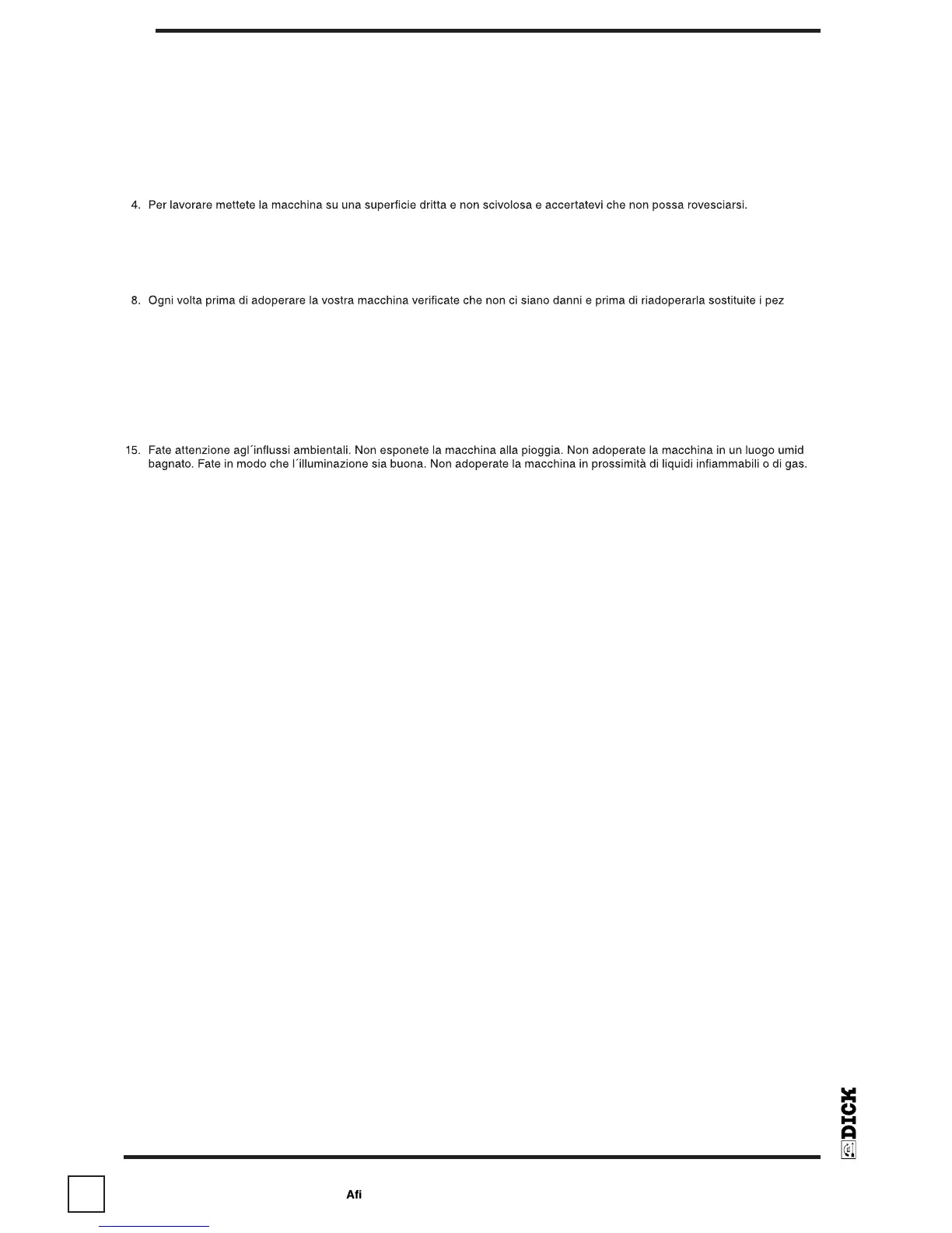 collaborazione e pertanto vi preghiamo di voler tutelare i vostri interessi osservando quanto segue. Le macchine DICK sono concepite