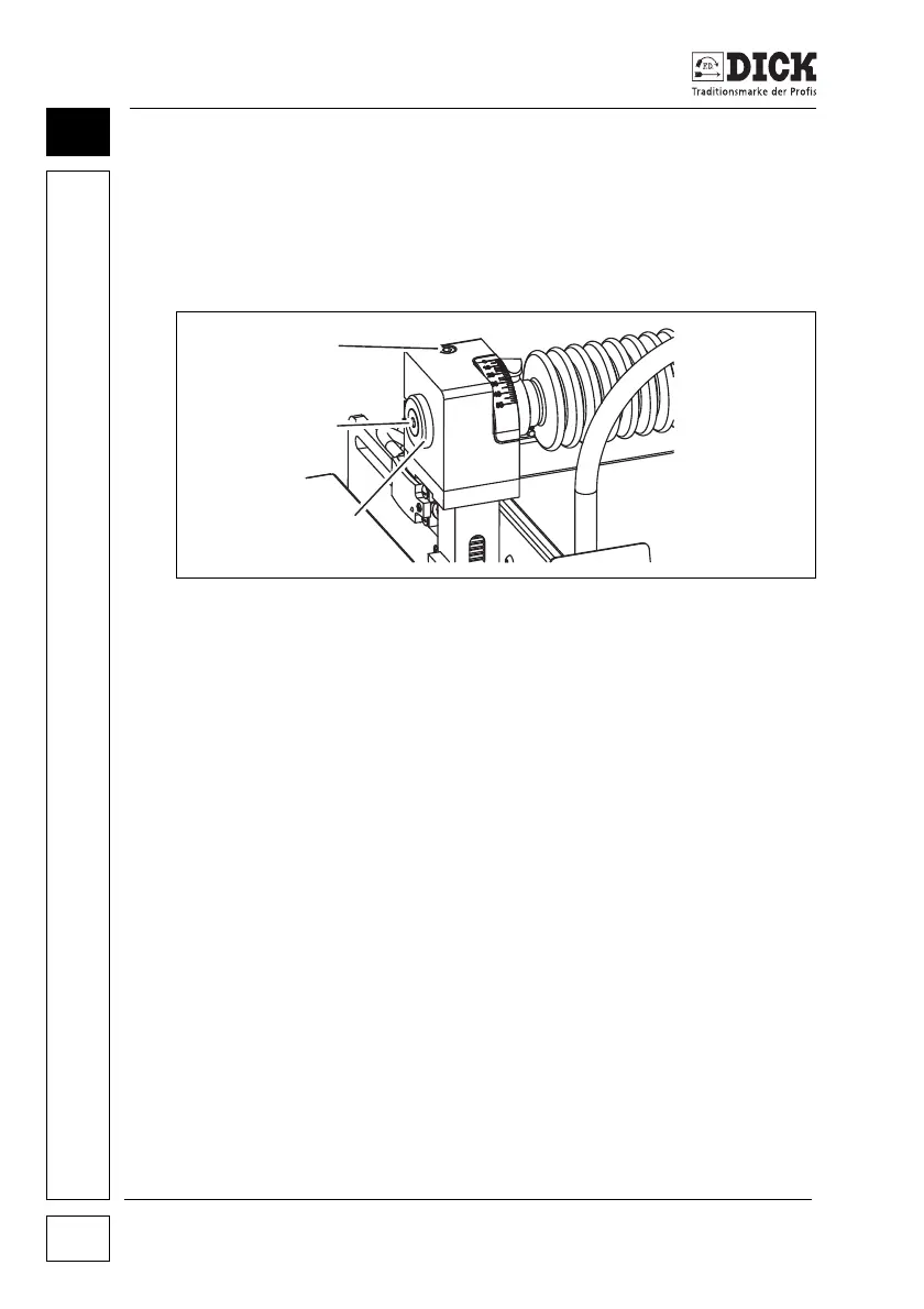 1 Loosen the hexagon socket screw [2] on the grinding arm on