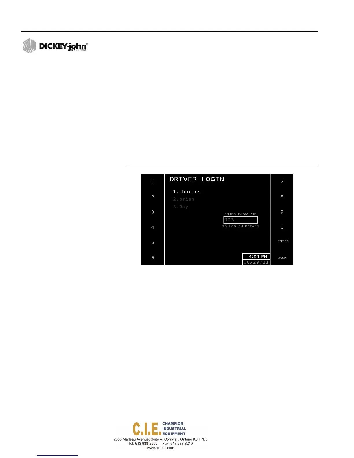 The Driver Login screen displays a list of up to 20 drivers created by an