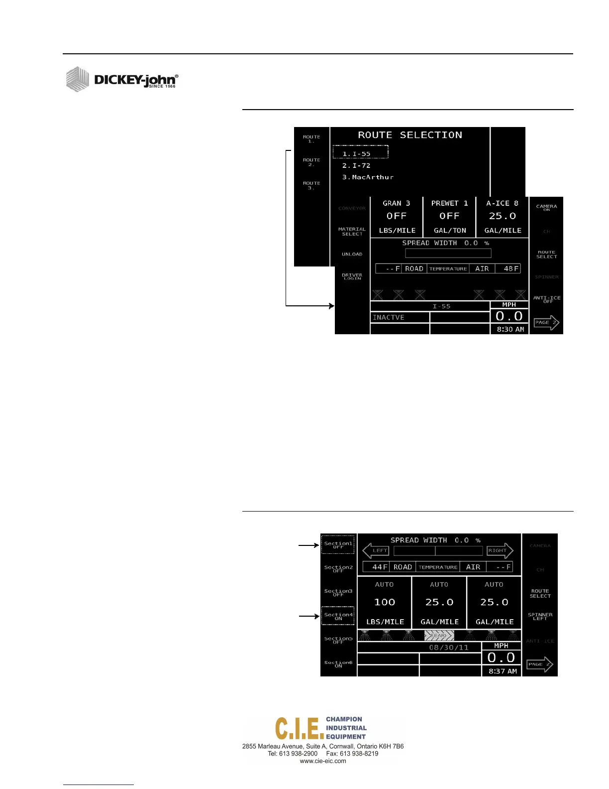 Spray nozzle graphics indicate active state. Any nozzle that is active