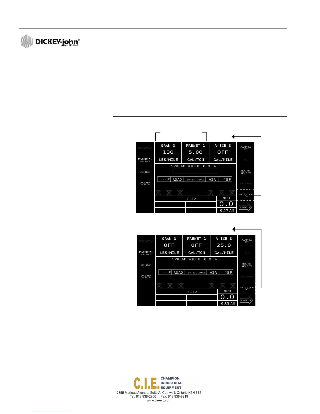Press the (F1) Operate button, the Anti-Ice button displays onscreen.