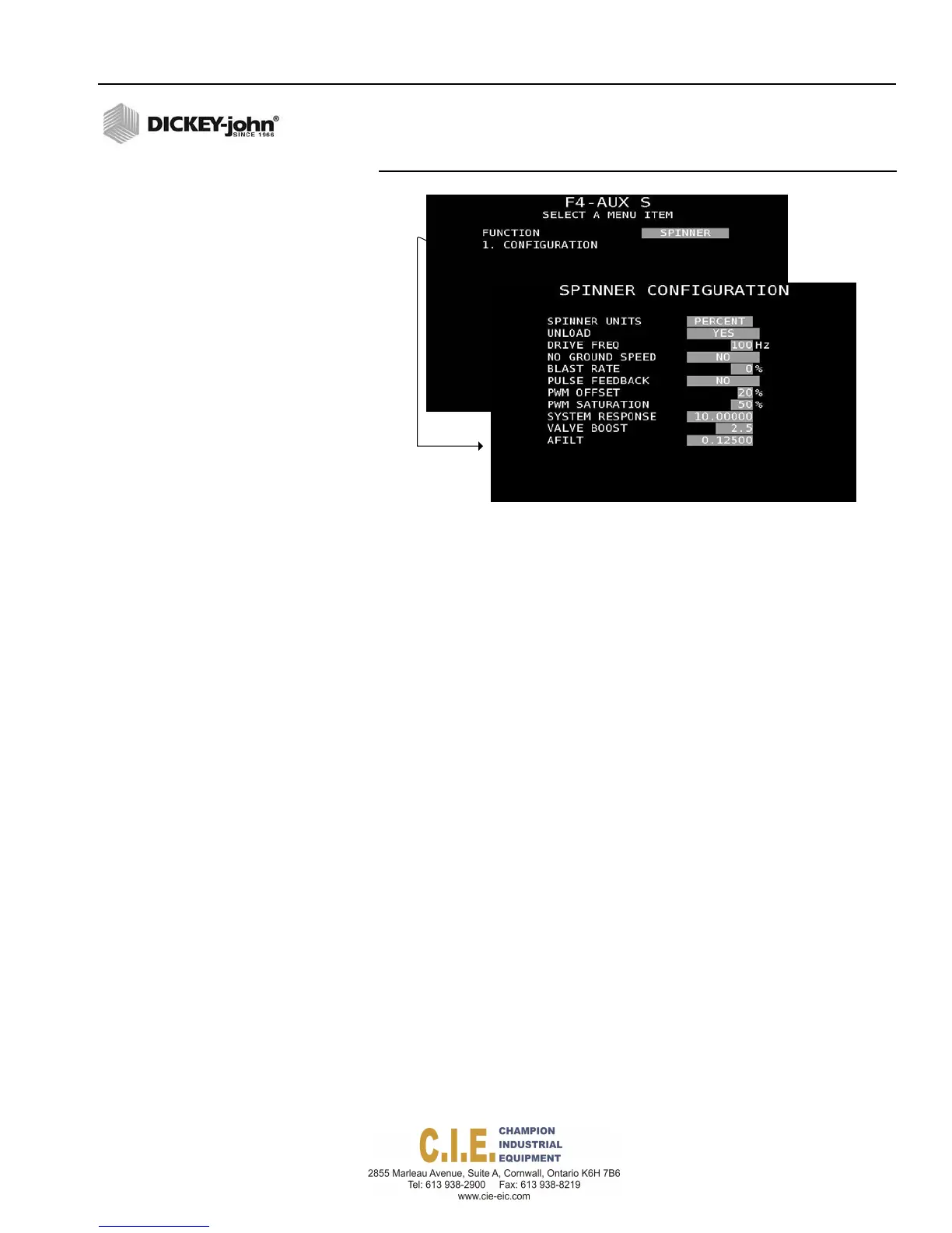 selected as RPM. If a spinner spread width calibration is required, spinner