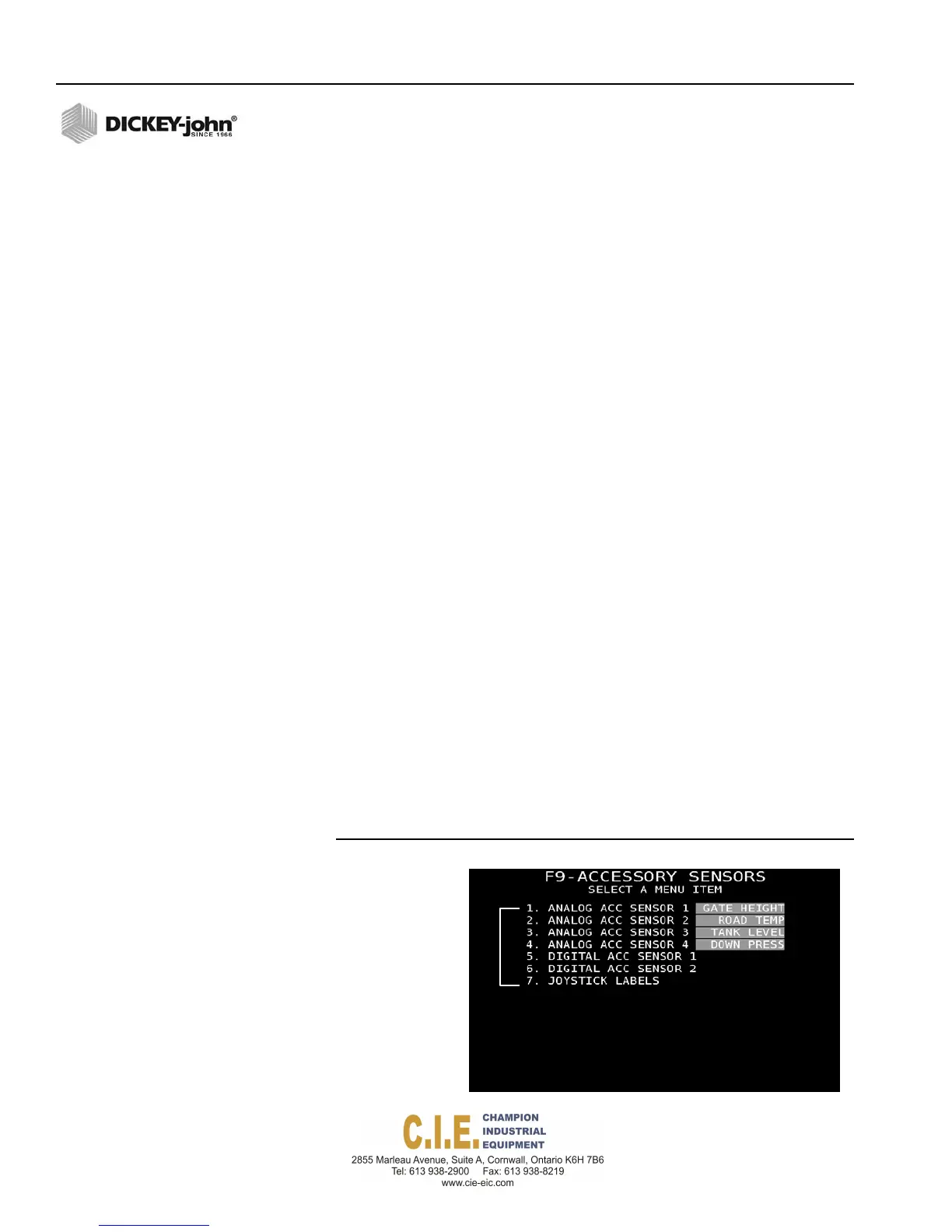 In addition to configuring accessory sensors, an installed DICKEY-john