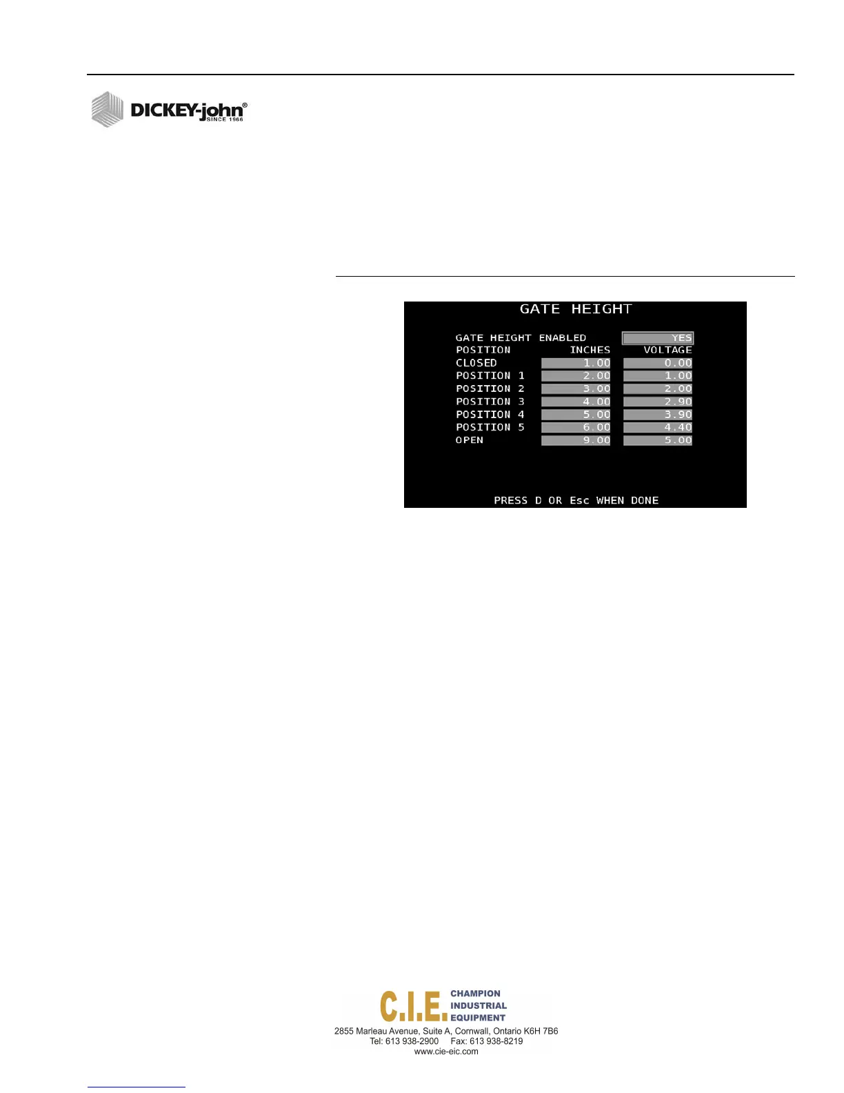 Gate Height status appears on the Operate screen as GATE 0.0 IN (cm).