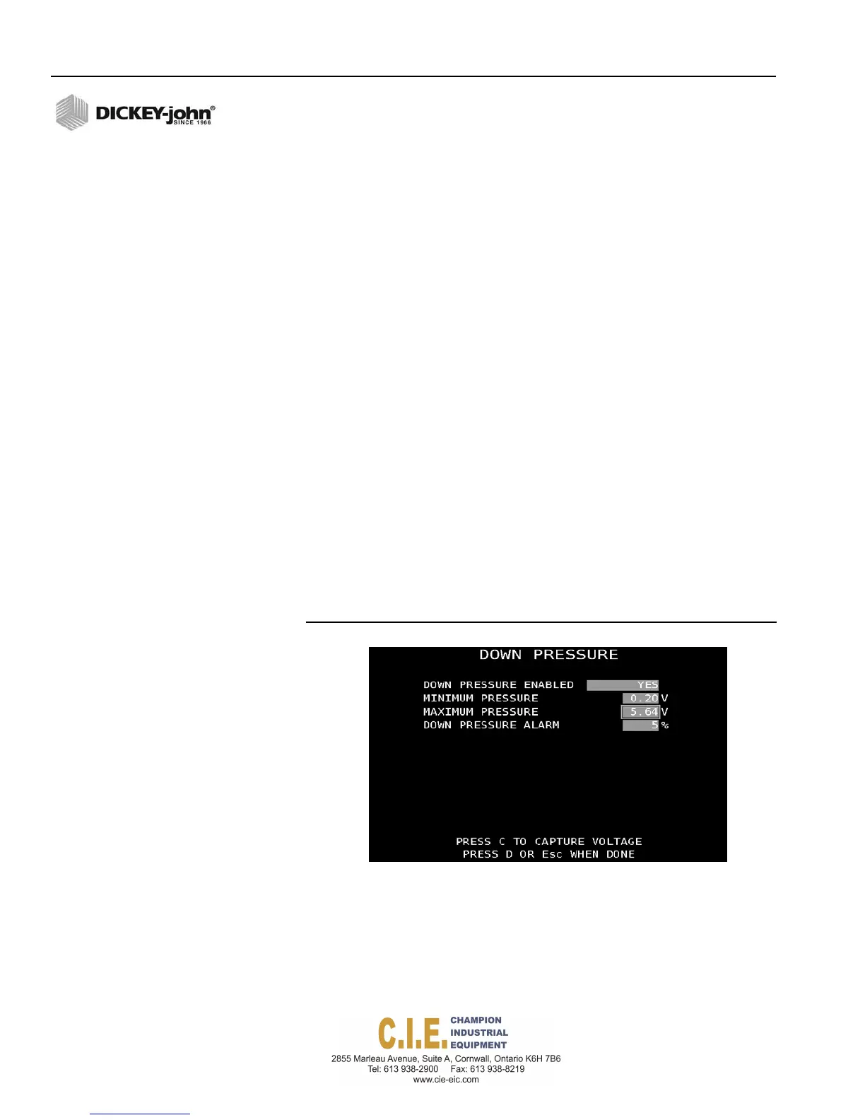 At the Down Pressure Menu screen, select Yes at the Down Pressure