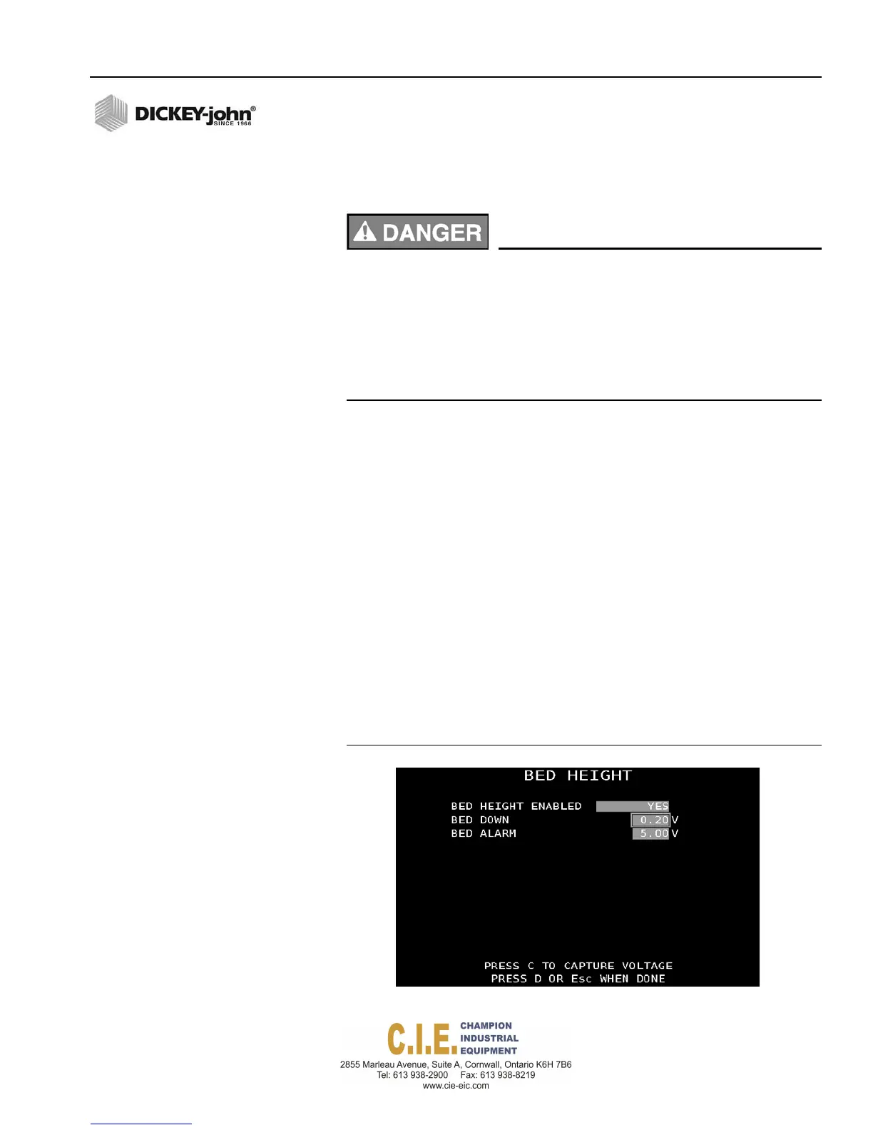 Highlight the Bed Alarm input box. The dump bed must must be near