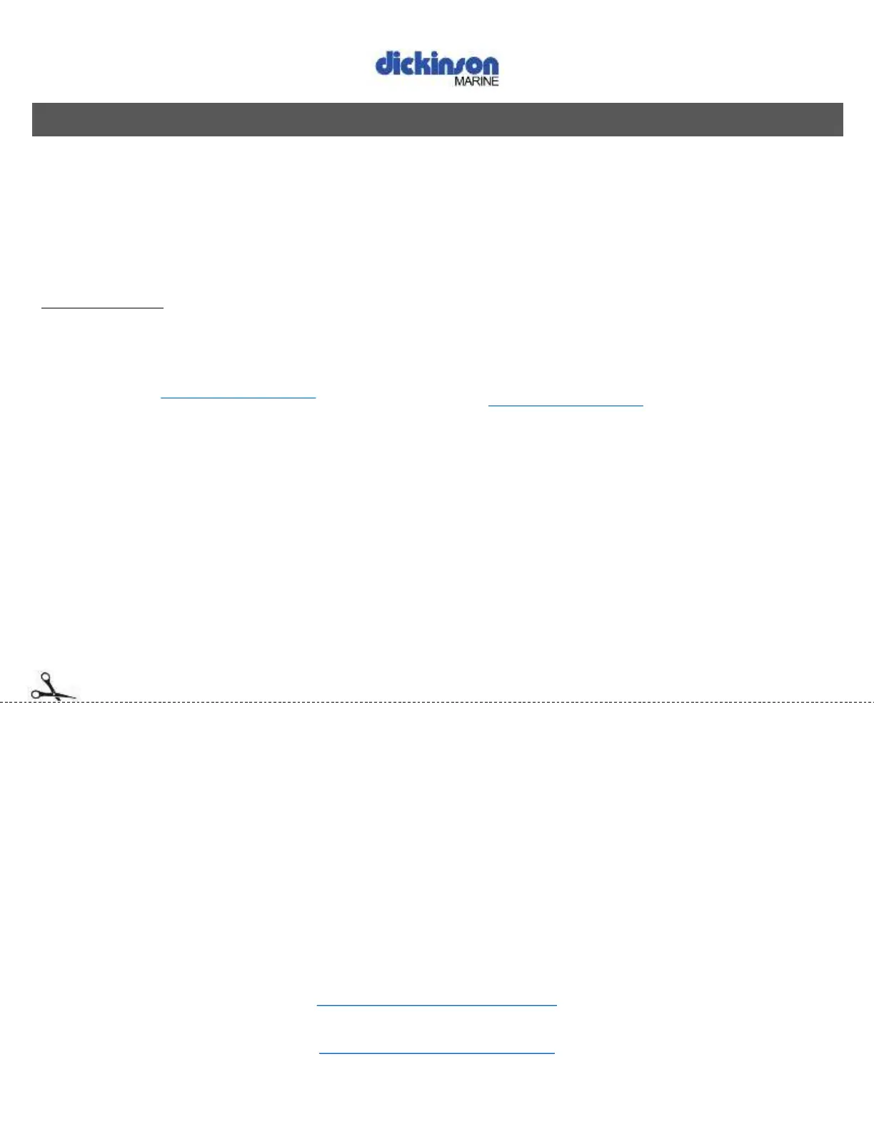 dickinsonmarine.com. In order to activate your warranty the warranty card below must be mailed back to us or the warranty must be
