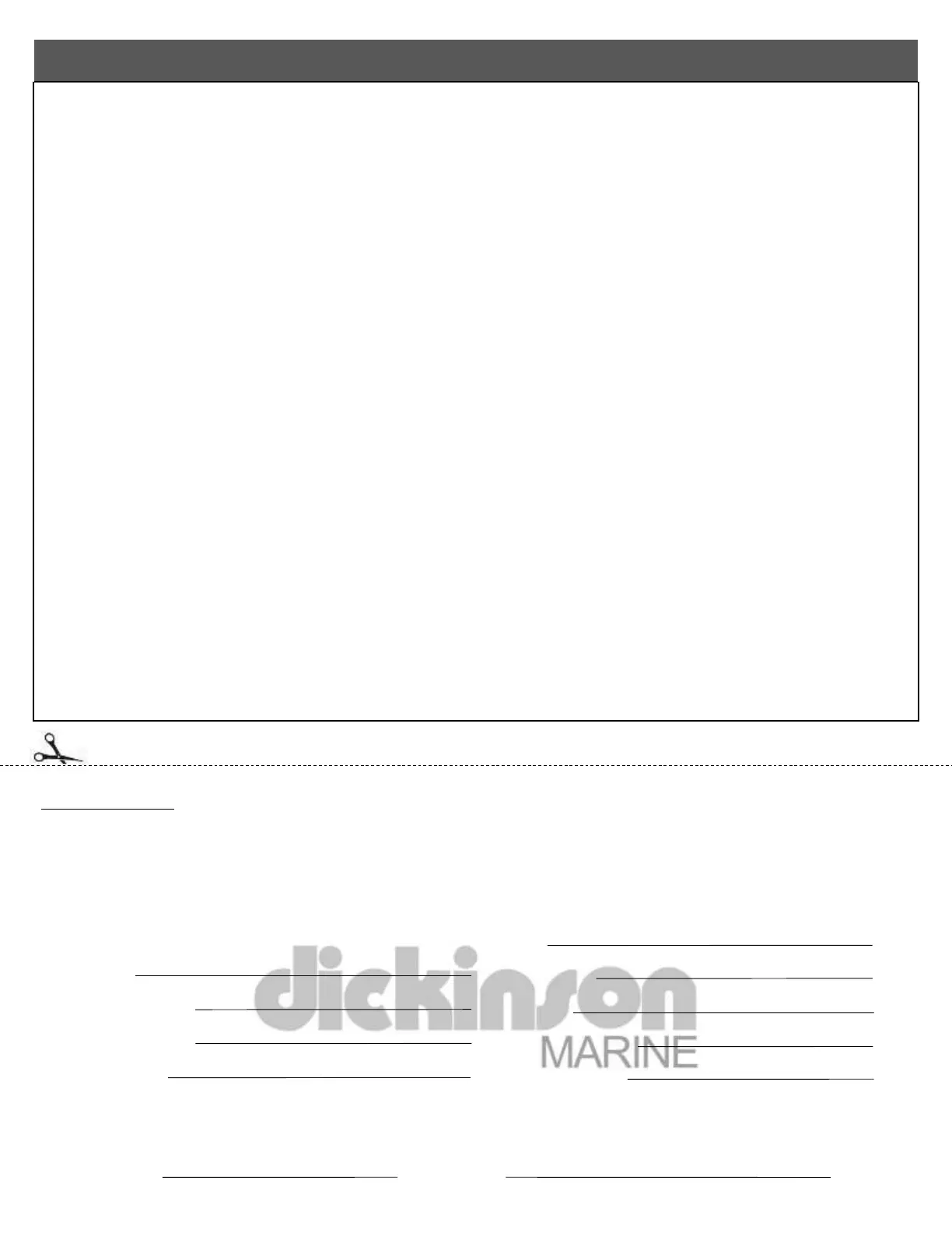 Please register your warranty with Dickinson Marine. Fill out and send back this warranty registration, or register online at