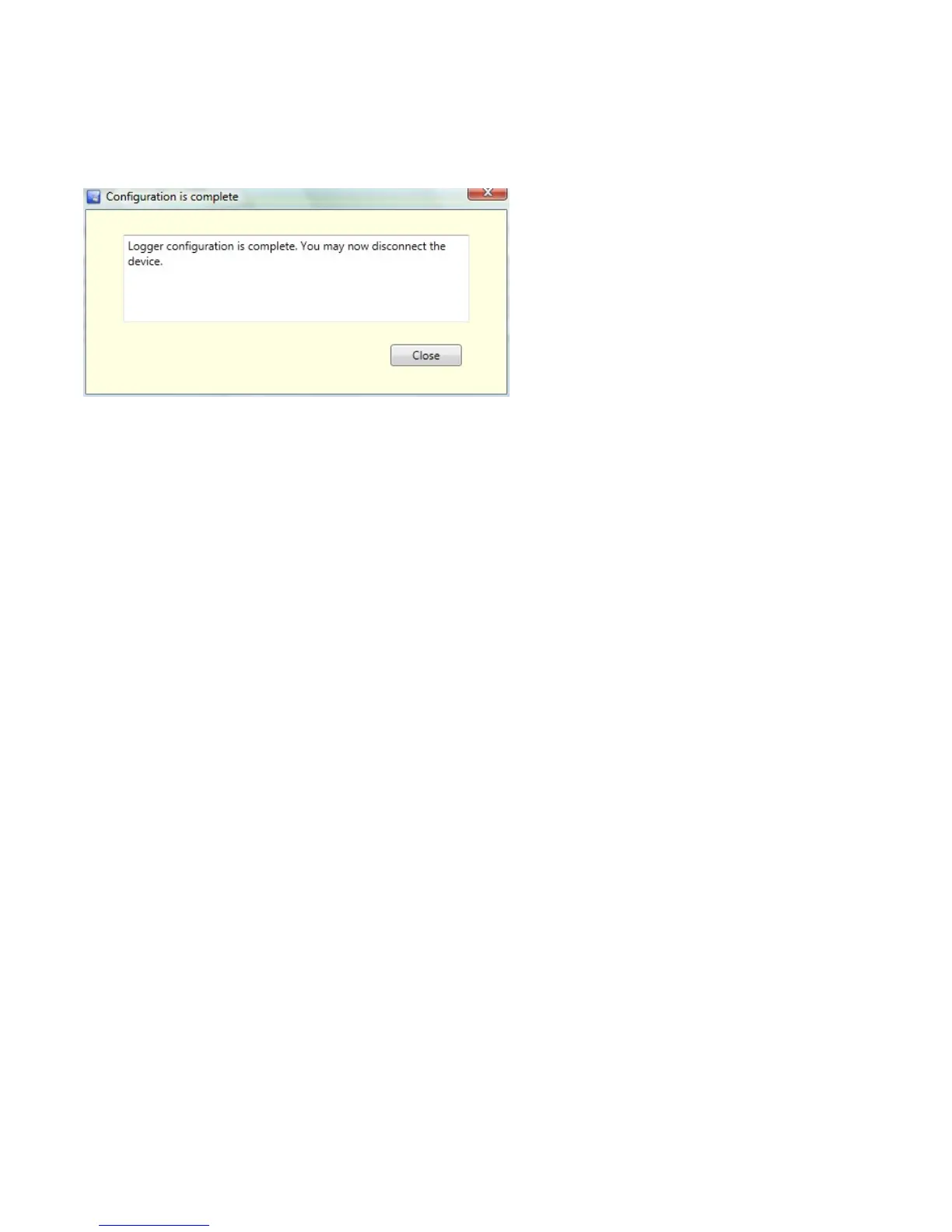 6) Logger Configuration Complete window will open. Disconnect USB from Logger. Wait for the ‘Add