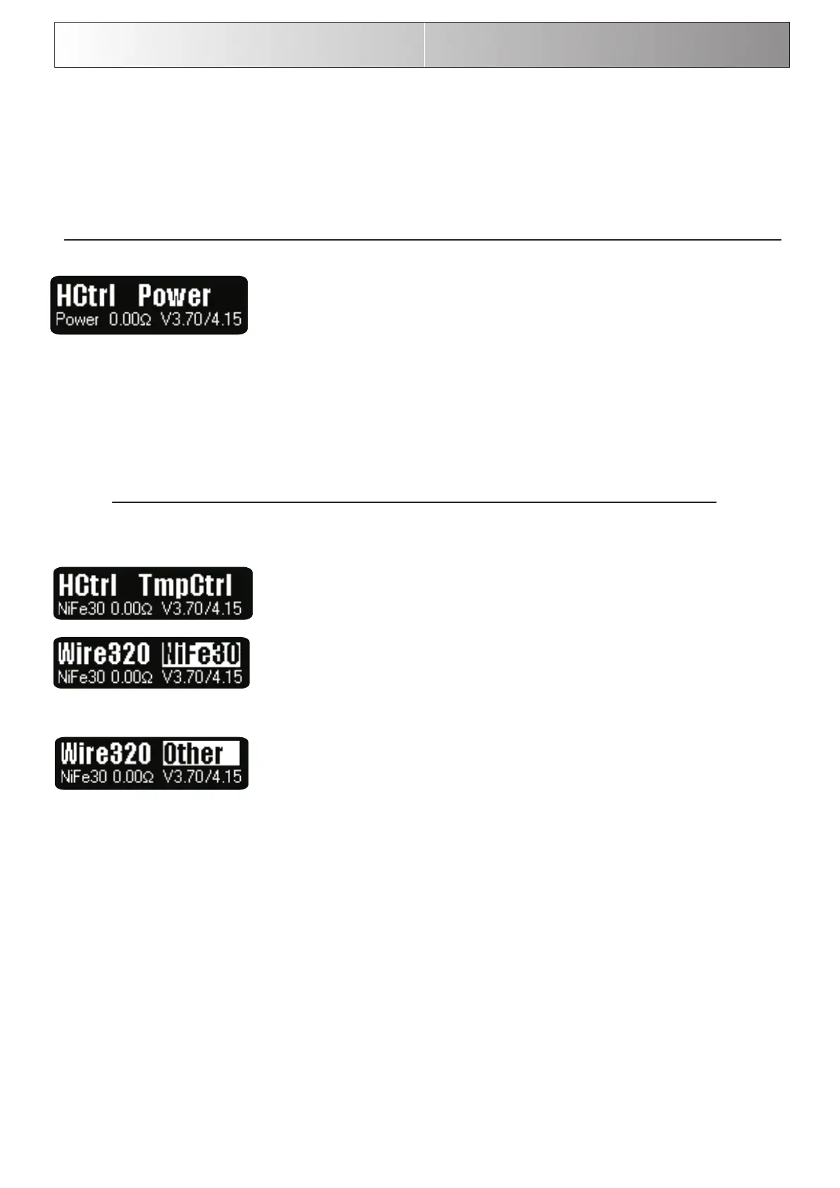 Thedefaultoperationiseitherpower(0)ortemperaturecontrolledvaping(1).