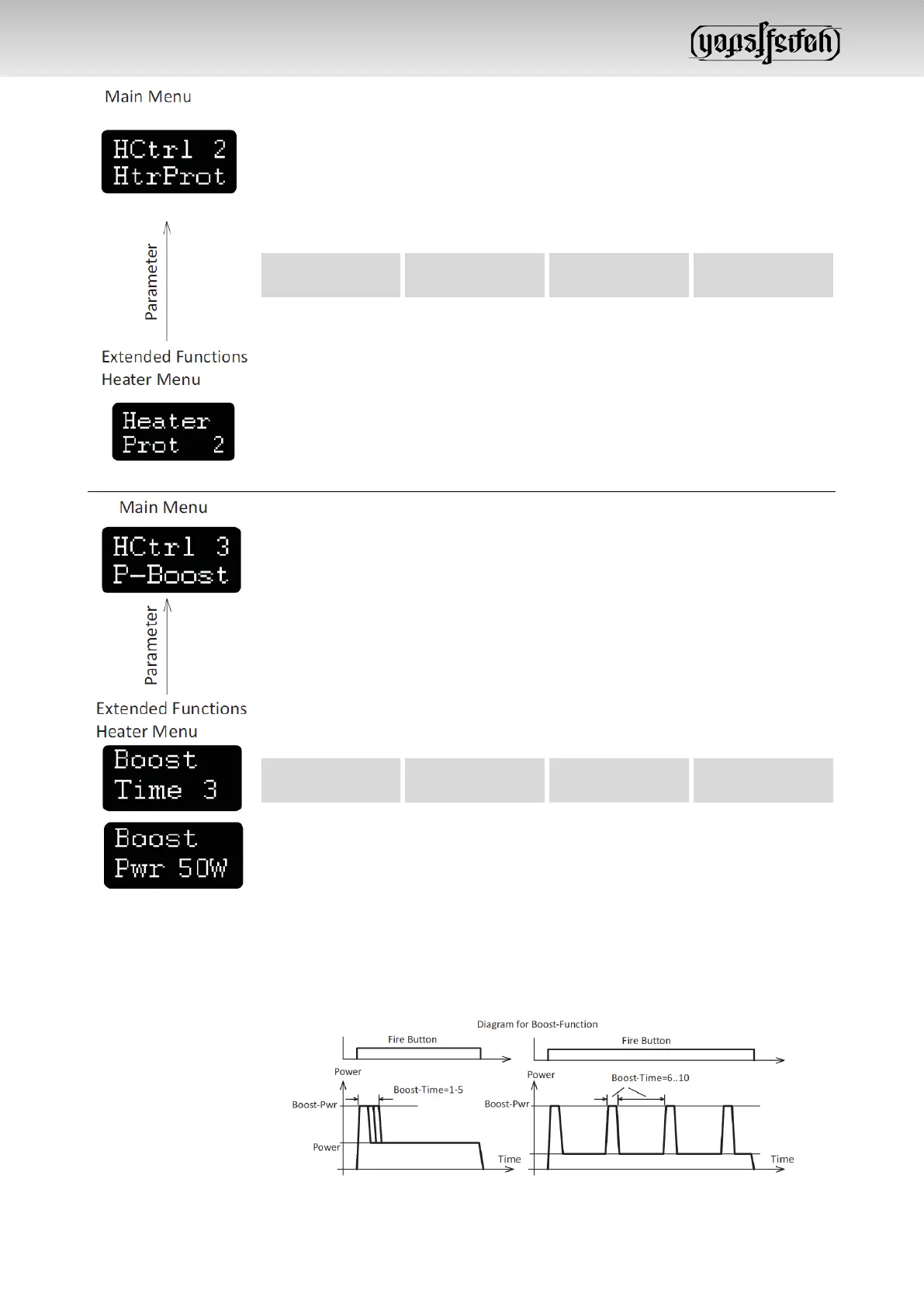 coil (boost). In addition to 3 selectable initial boost lengths, further options generate a