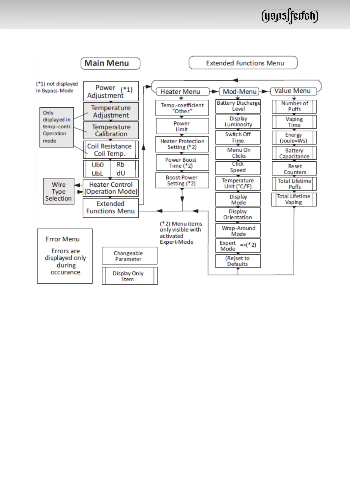 dicodes Yog's E-PIPE - Menu Overview