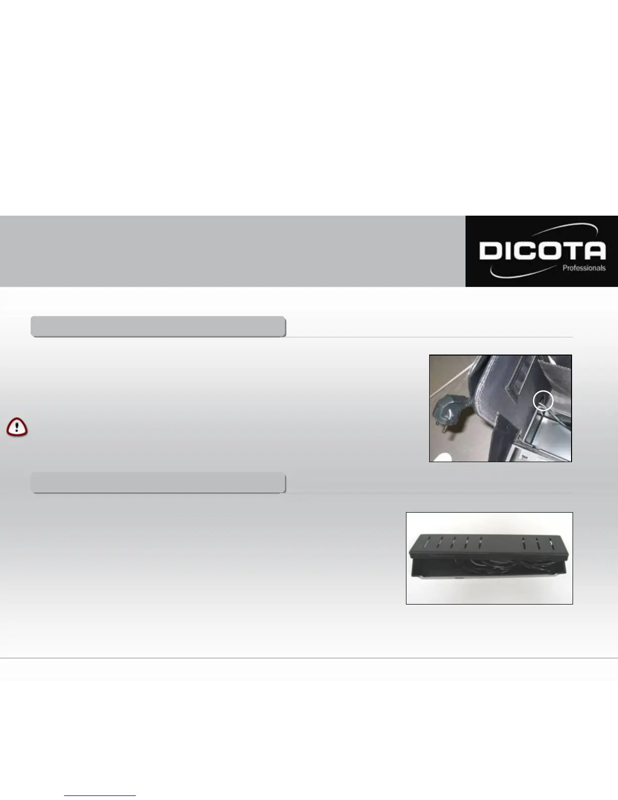Faites glisser les câbles d‘alimentation de votre ordinateur et de votre imprimante par l‘ouverture gauche ou