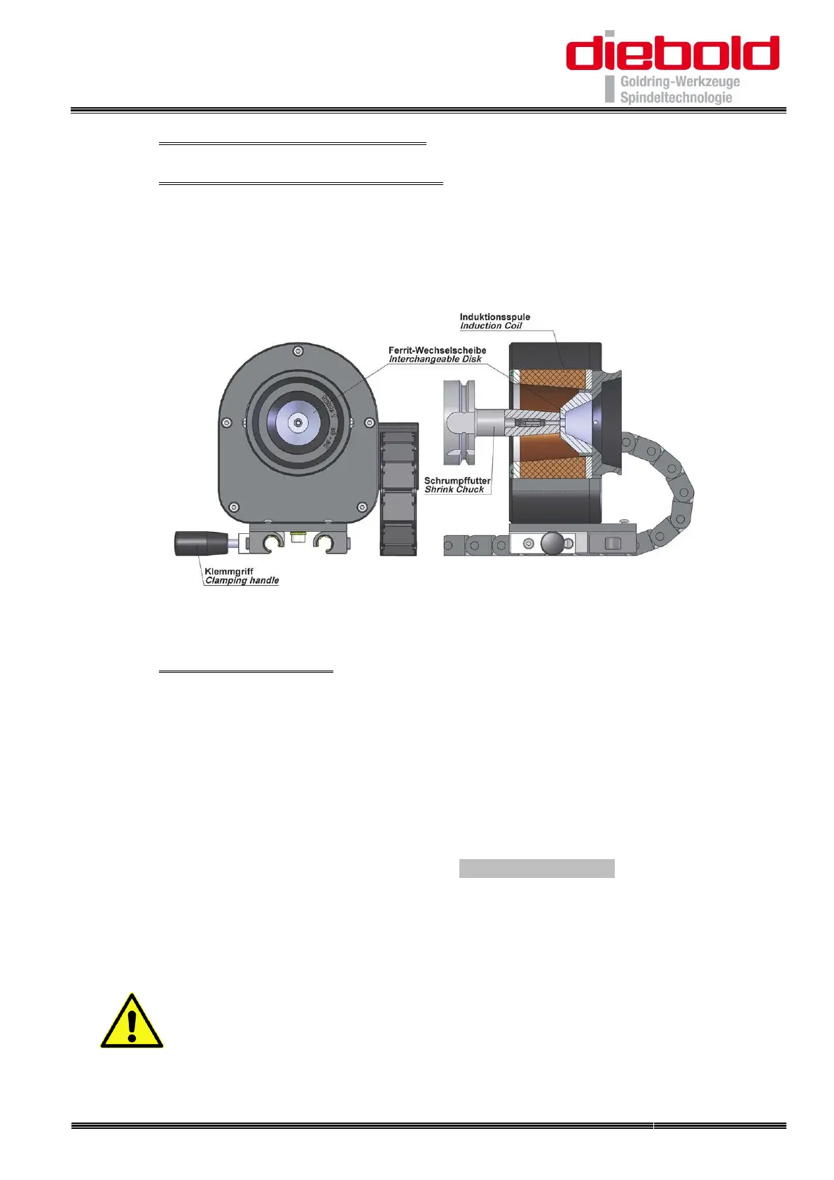 The induction coil may now be pushed back and the (hot) shrink fit chuck may be