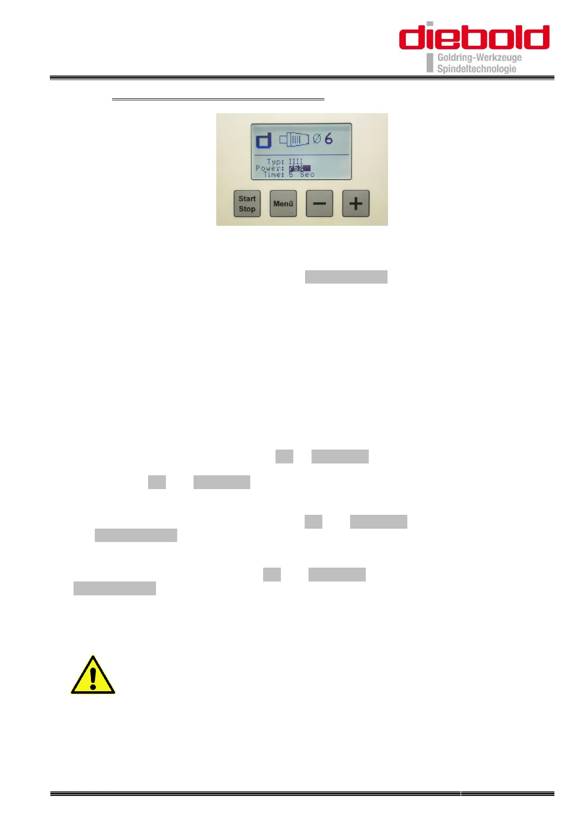 35. Select the shrink chuck type with the ”Menü“ button