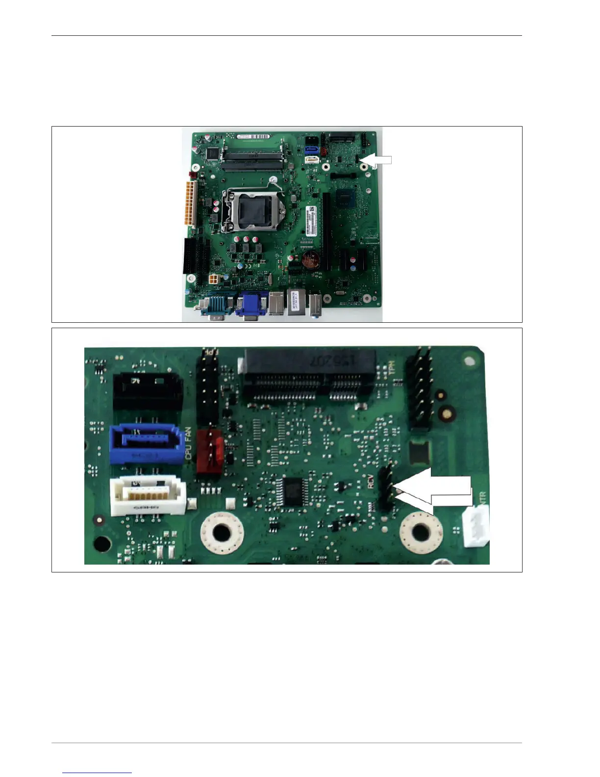 The system remains switched off. Plug the jumper in at Position 1-2 of the Config Connector (arrow) on the