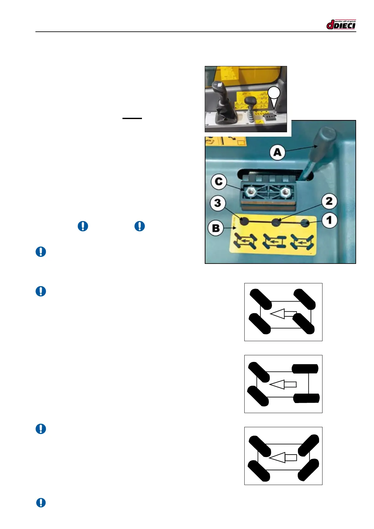 By moving the lever (fig.67/C Pos.”A”) 3 types of steering