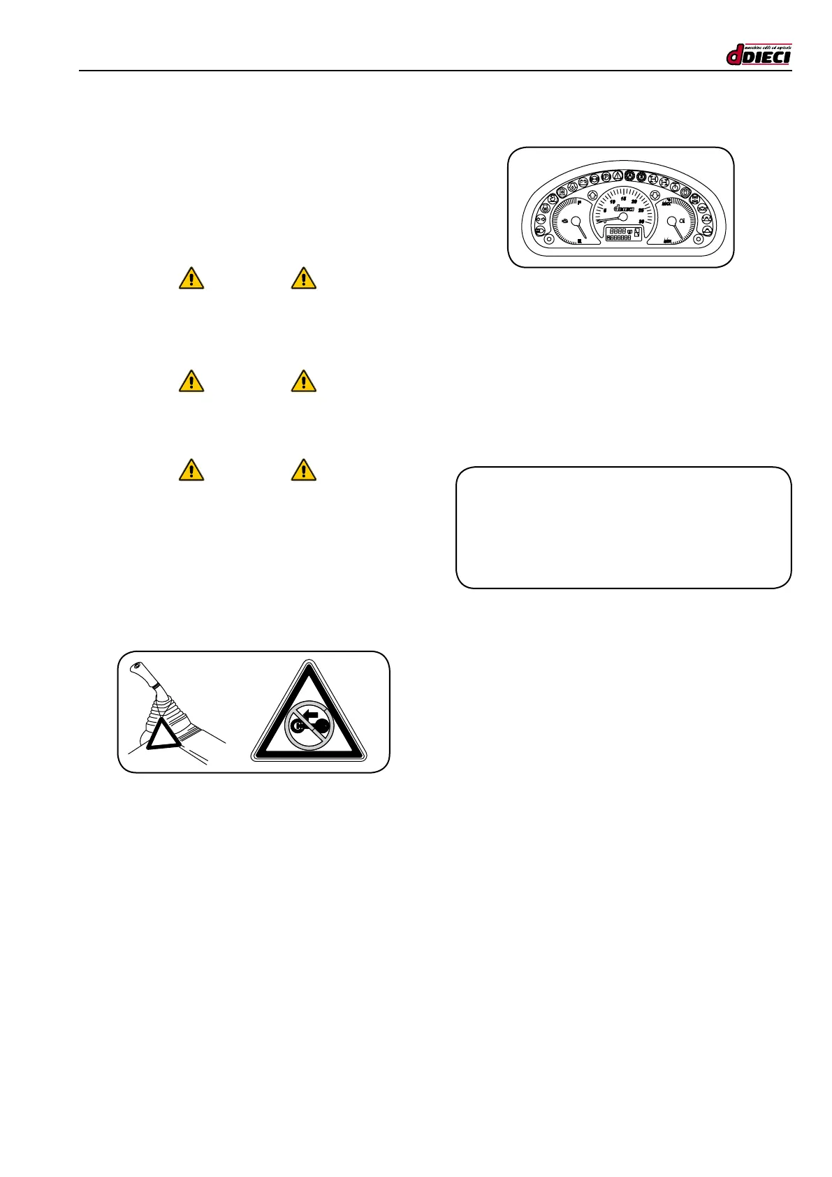 - Do not start the engine or touch the levers if there is a
