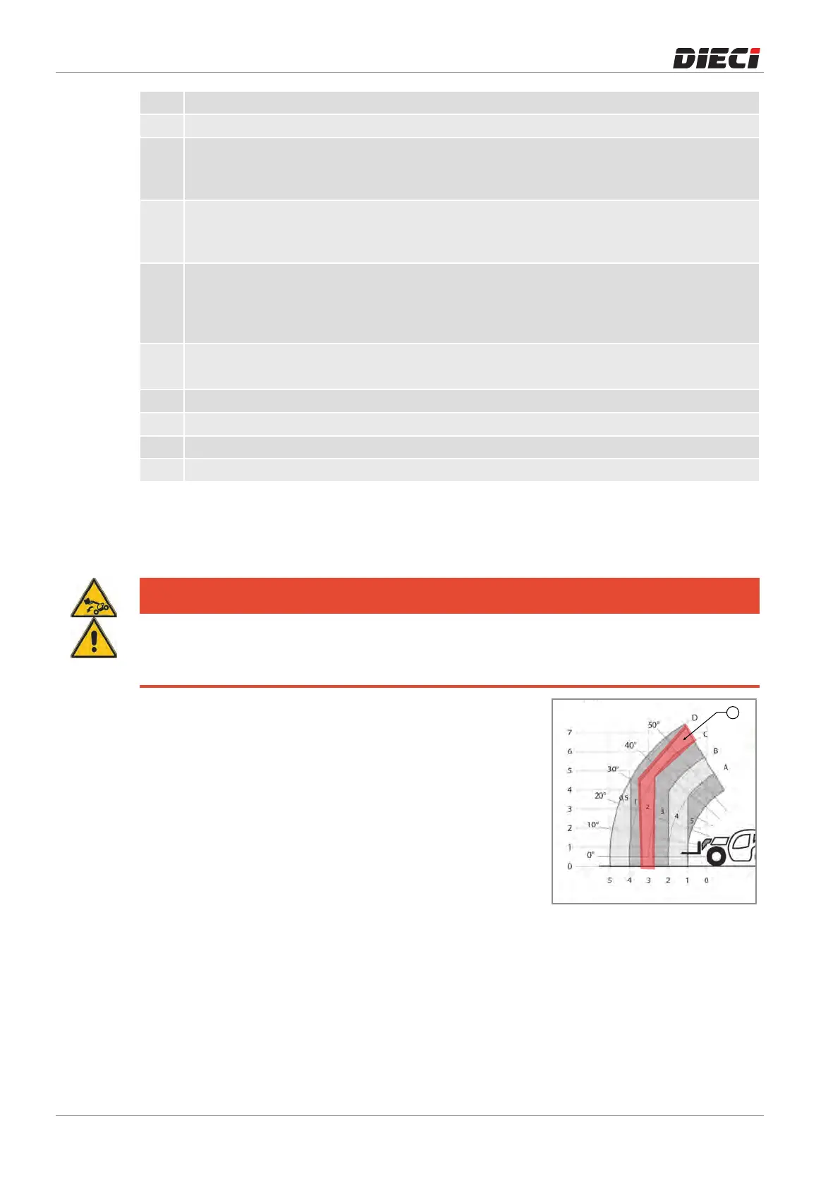 result in hazardous conditions, up to the tipping limit and the operation of the Anti-tipping device.