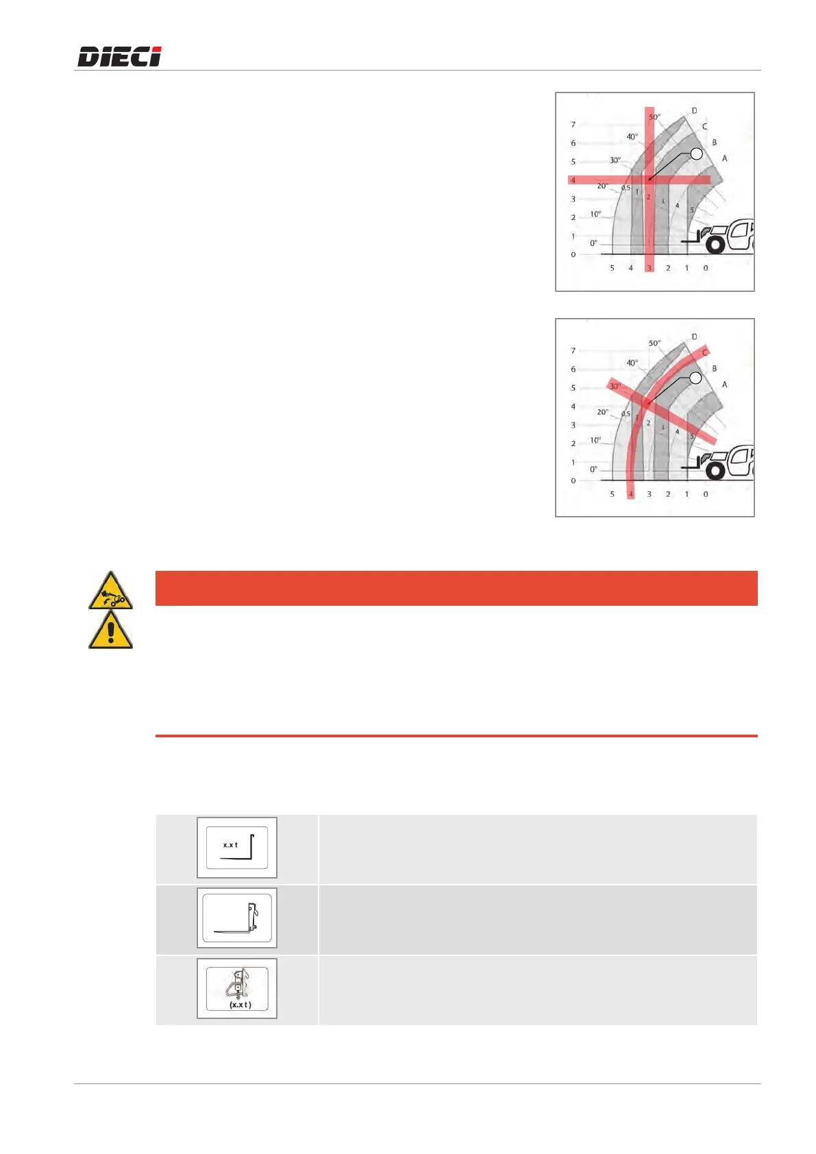 To avoid operating in conditions of tipping danger, use the