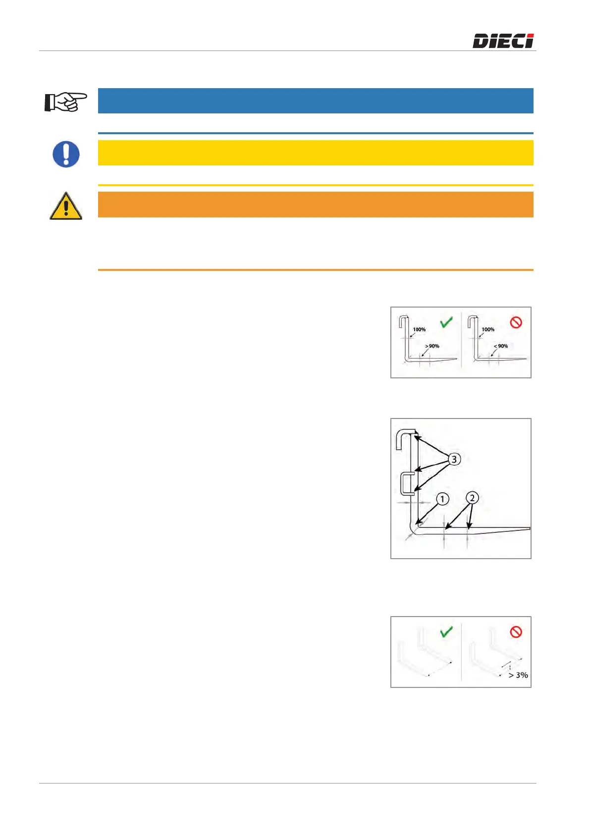 In the event of damage or deformation immediately replace the forks.