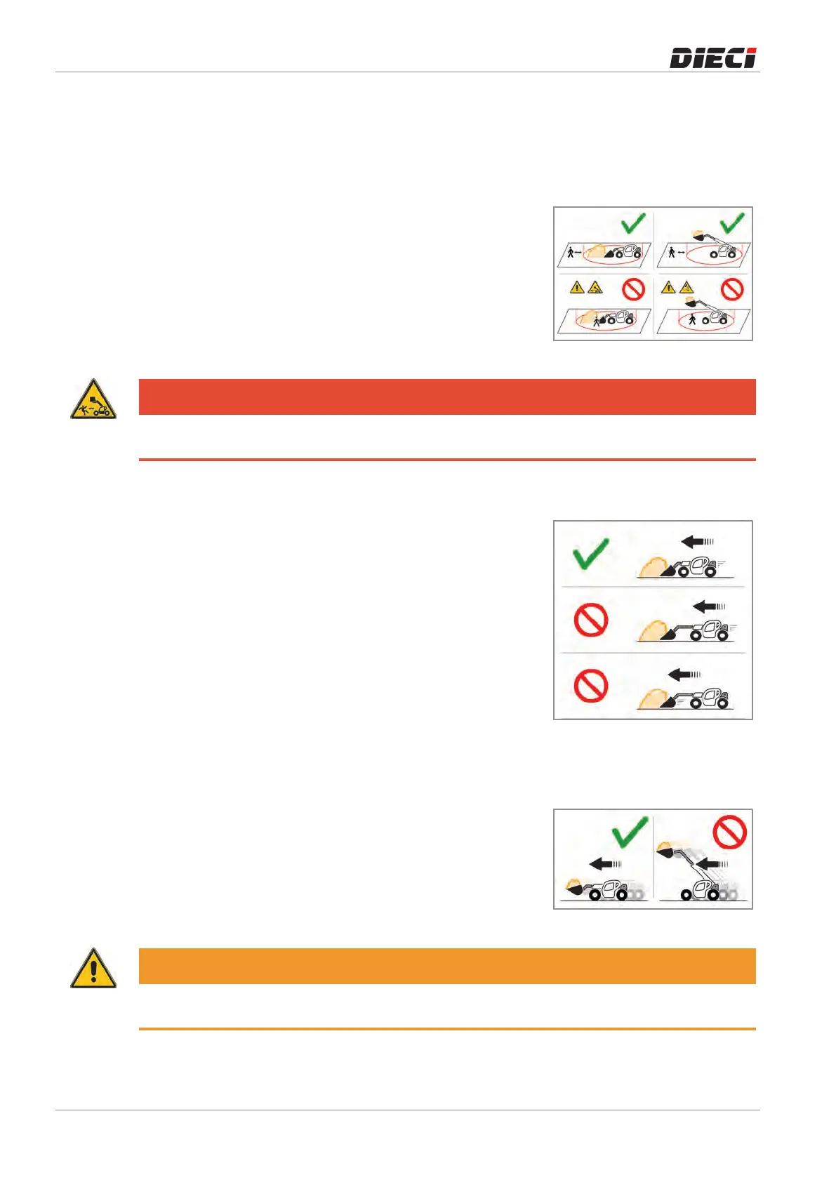 It is advisable to keep the bucket at a height sufficient to be able to avoid roughness of the terrain along