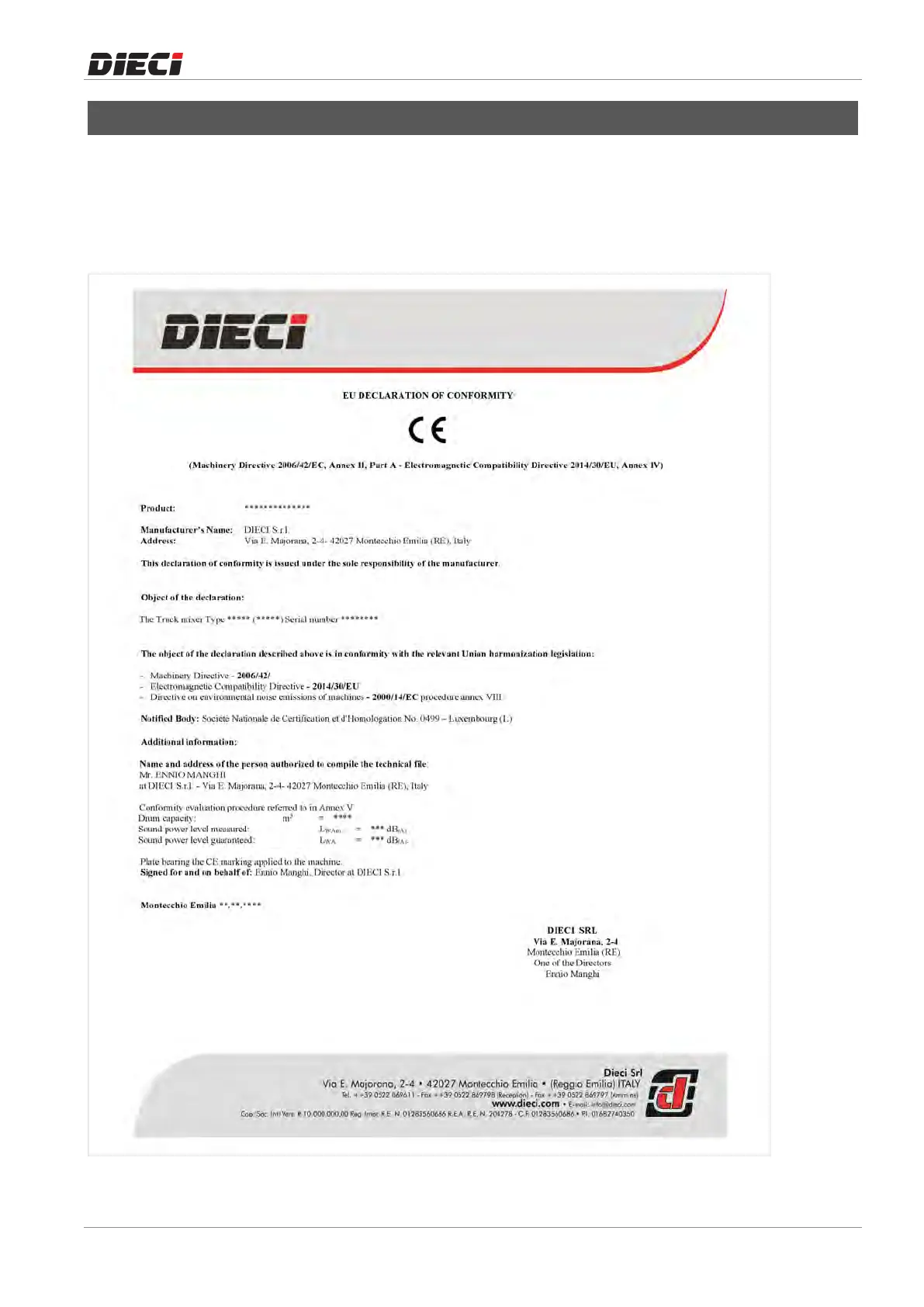 The vehicle and related equipment are manufactured in accordance with the relevant EU directives and applicable