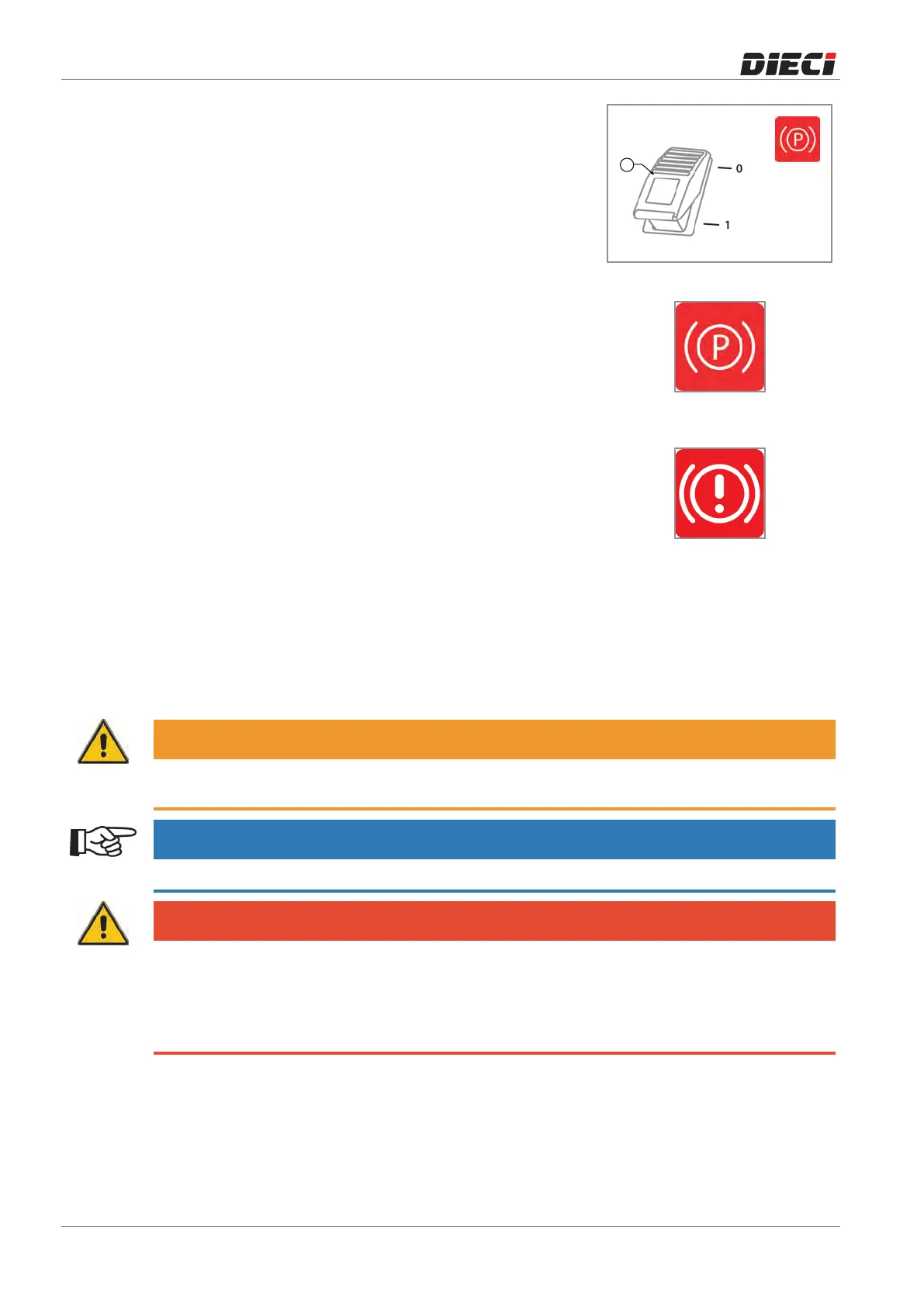 To verify the efficiency of the parking brake contact a DIECI authorized workshop.