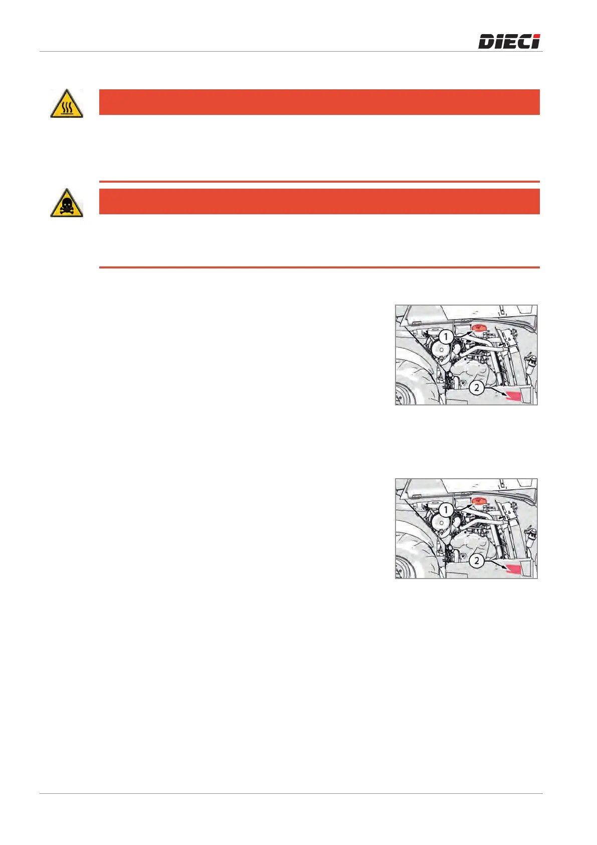 cause leakage of boiling coolant. Once the system has cooled, turn the filler cap to the