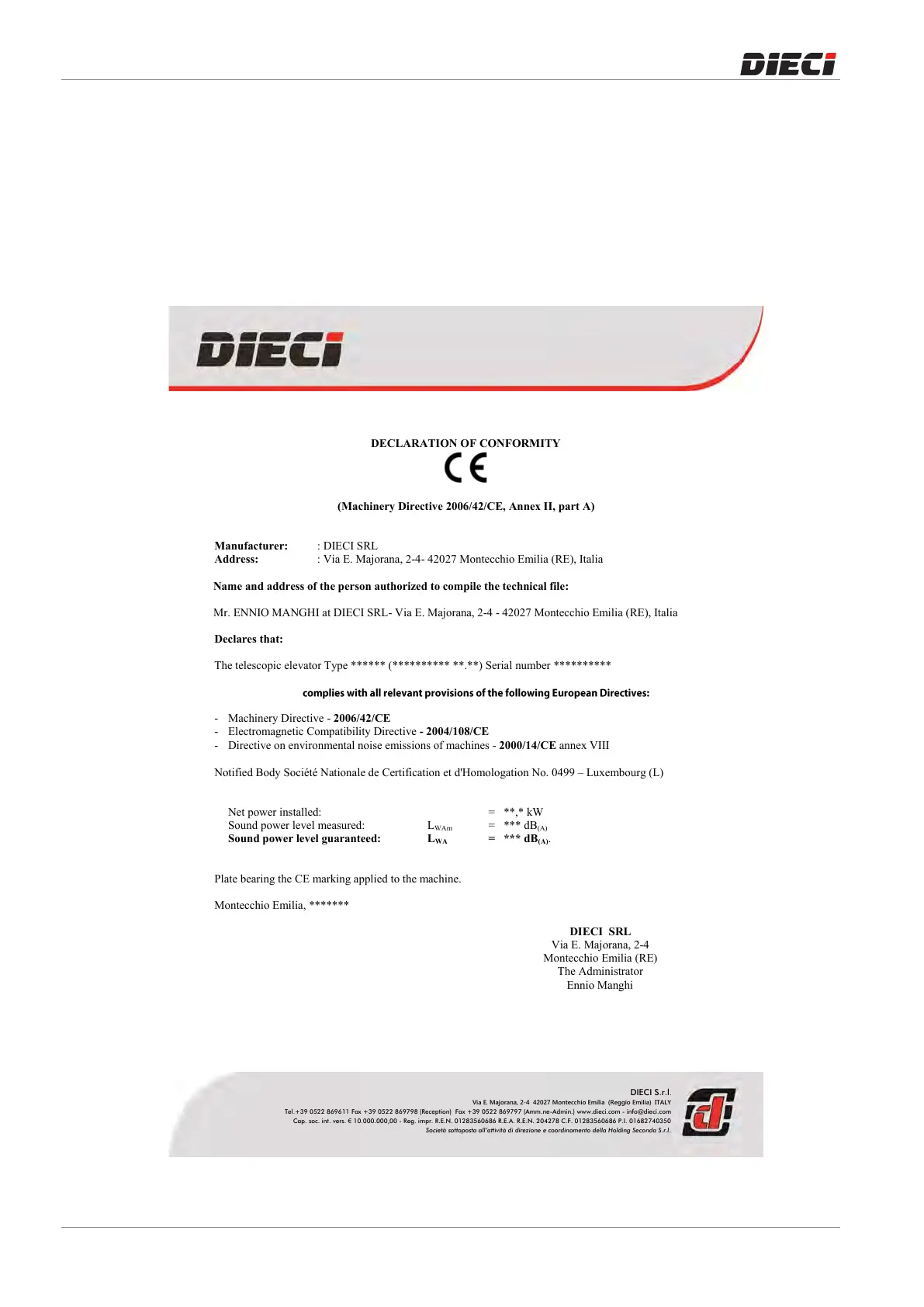 Mr. ENNIO MANGHI at DIECI SRL- Via E. Majorana, 2-4 - 42027 Montecchio Emilia (RE), Italia