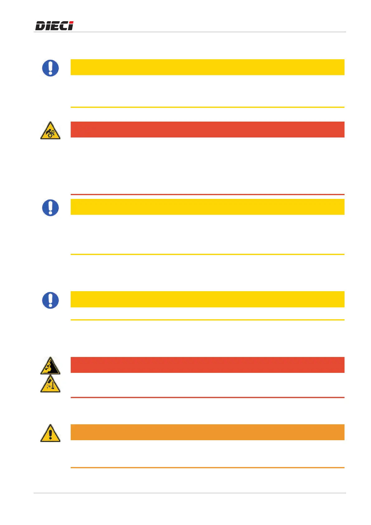 Pay attention to moving parts to avoid danger of crushing or dragging of the lower and upper limbs.