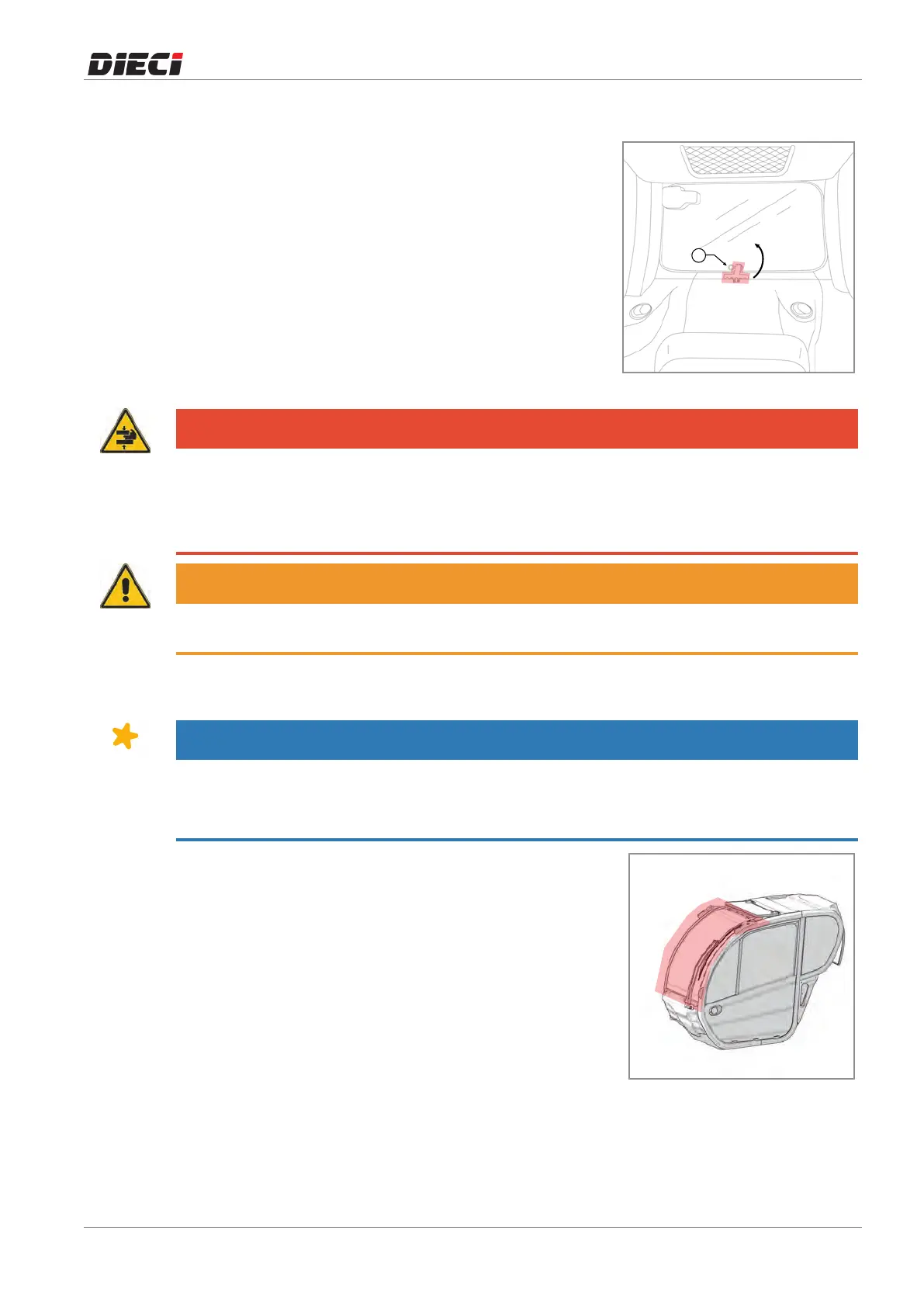 Emergency exit: The front glass is a standard equipment for the machines approved as agricultural