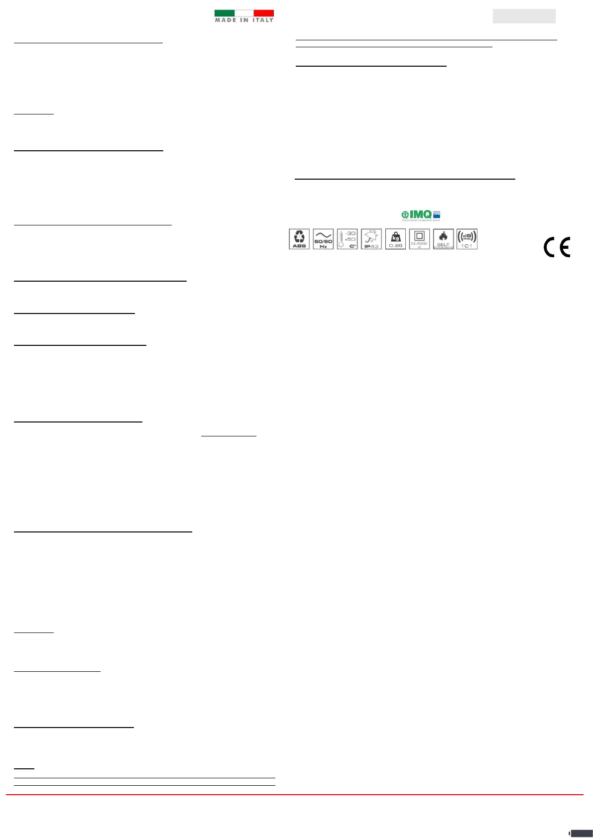 Uscita aliment. Ausiliaria: 12 Vac 1W max.