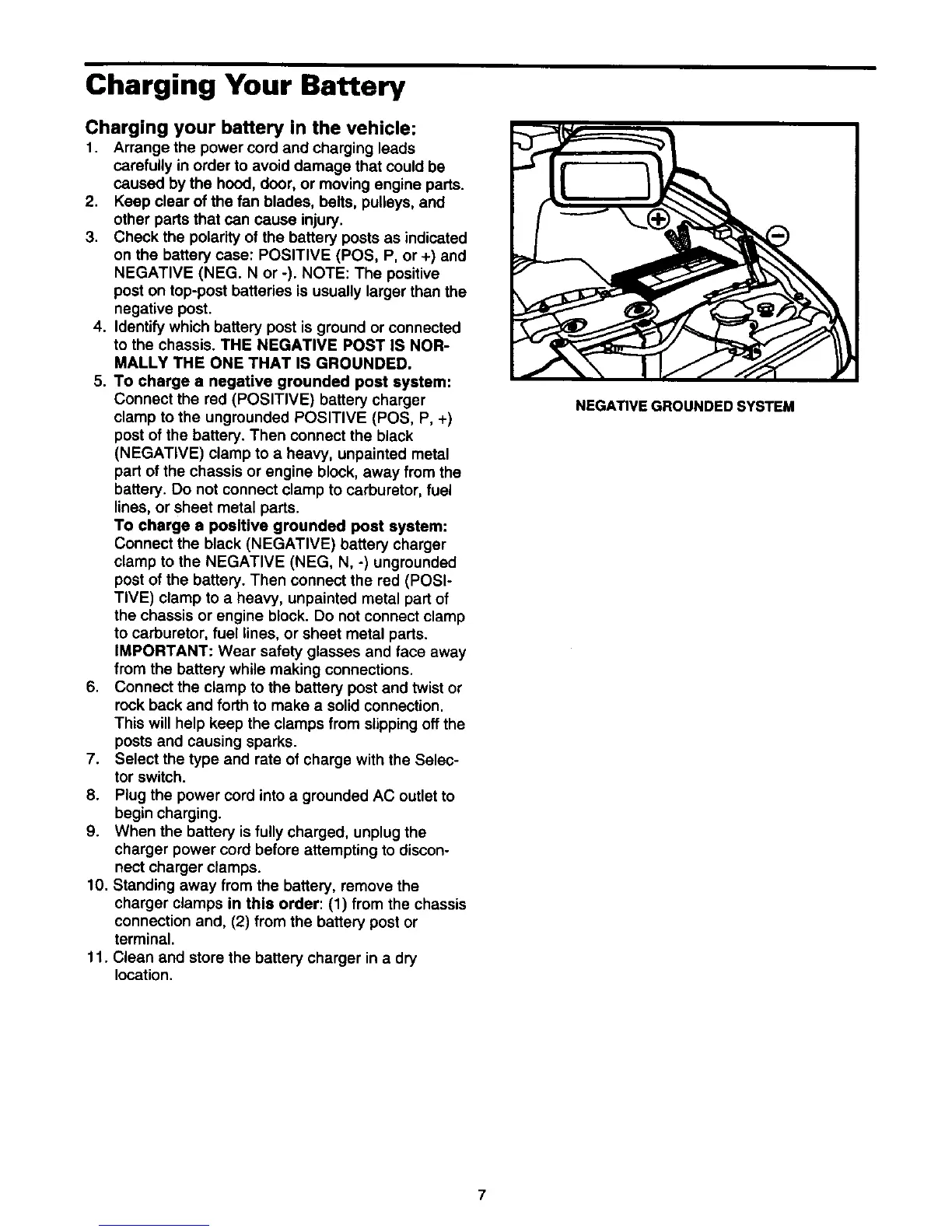 Connect the black (NEGATIVE) battery charger