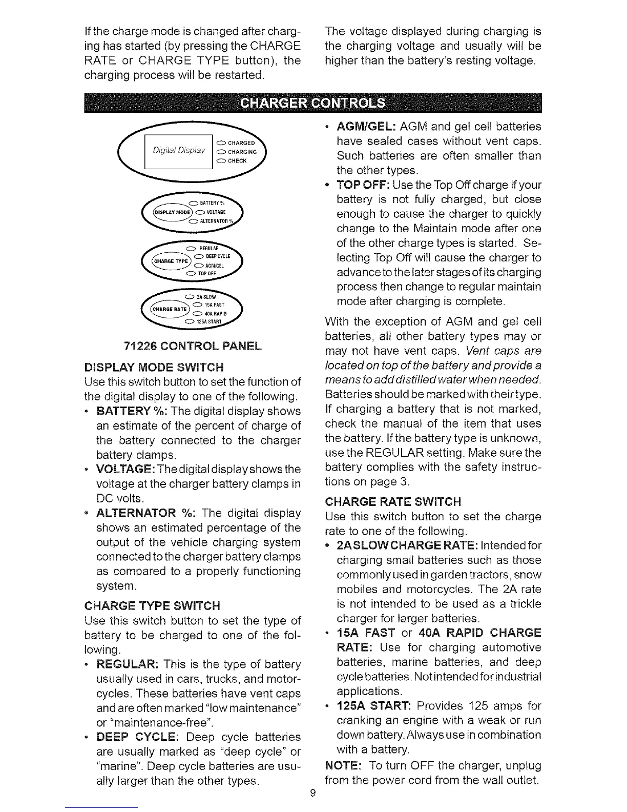 • 15A FAST or 40A RAPID CHARGE