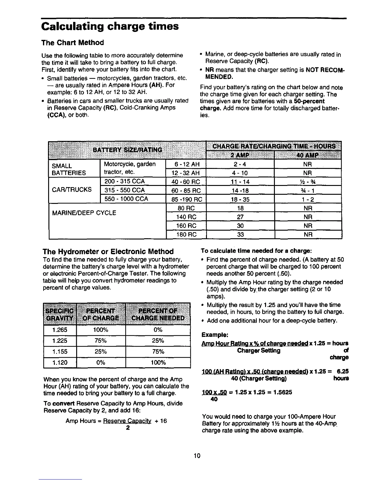 or electronic Percent-of-Charge Tester. The following