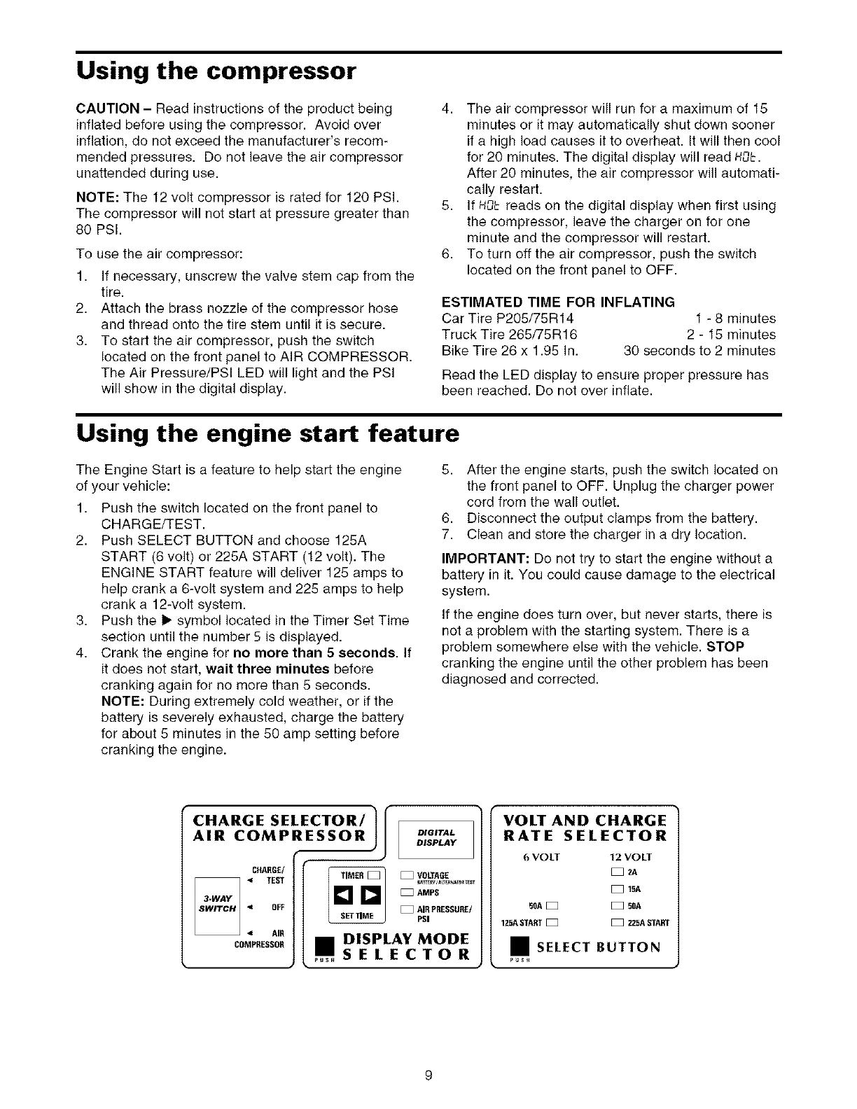 inflated before using the compressor. Avoid over