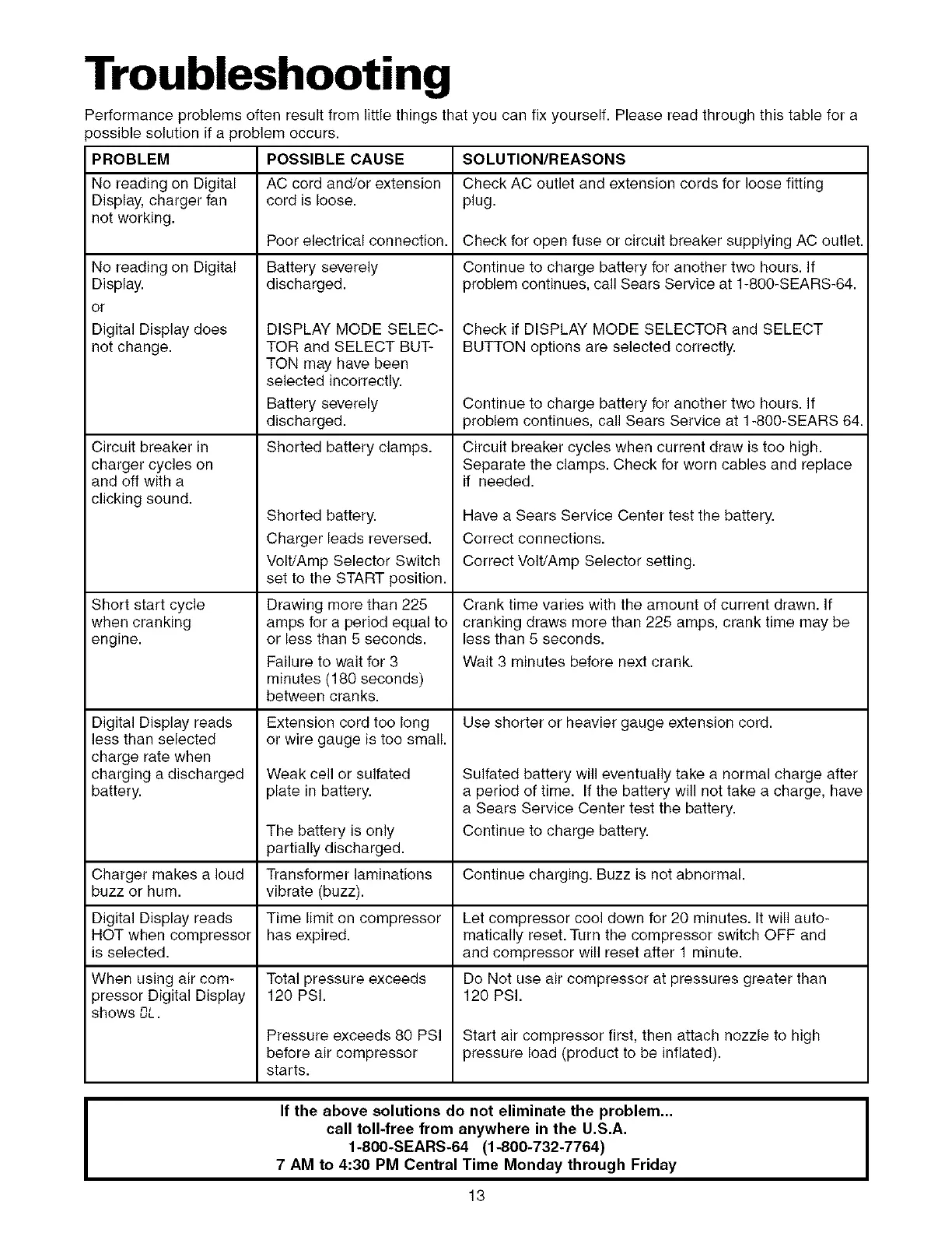 problem continues, call Sears Service at 1-800-SEARS-64.